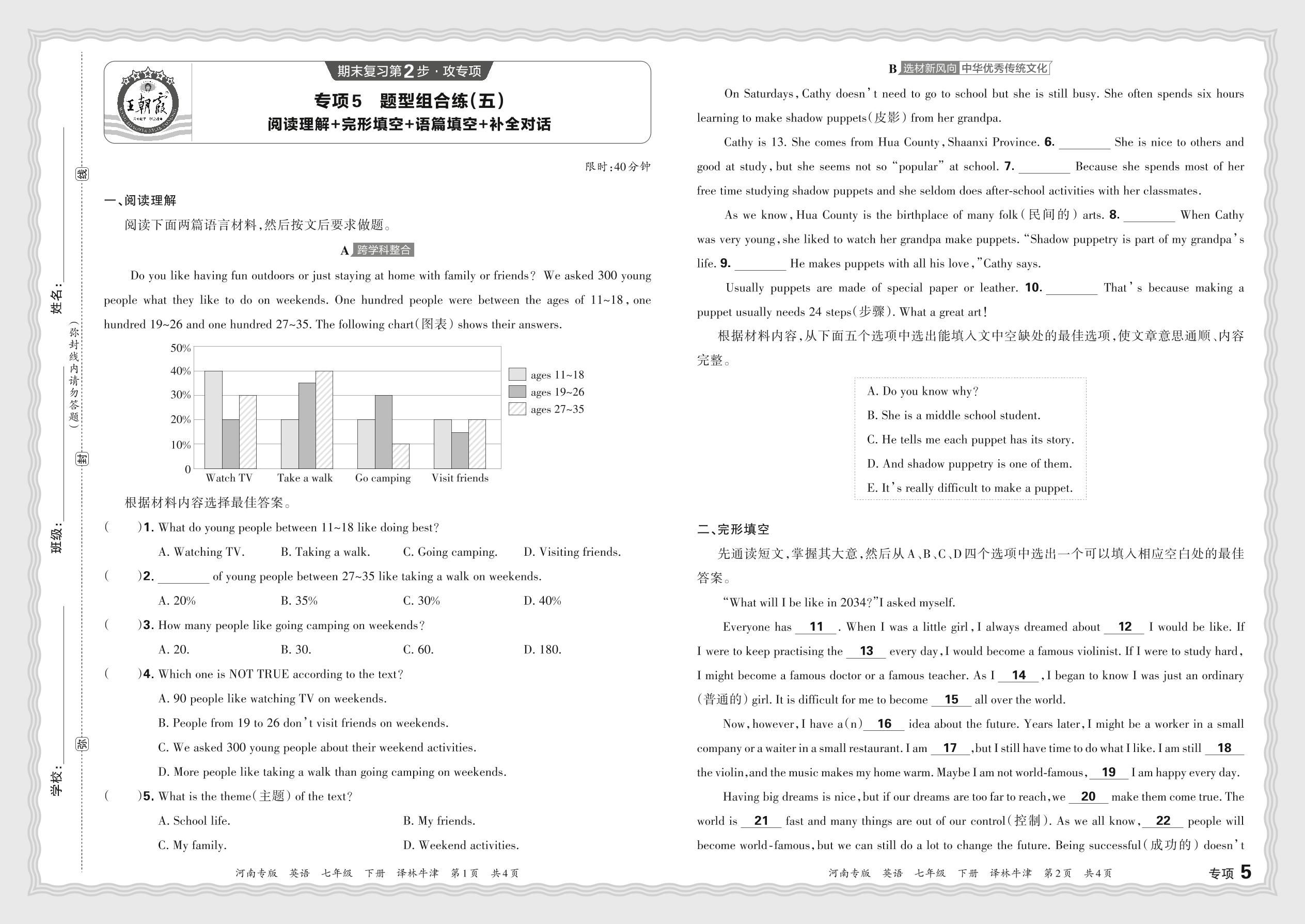 2024春下册七年级英语译林牛津版 期末专项卷河南版·题型组合练(五)