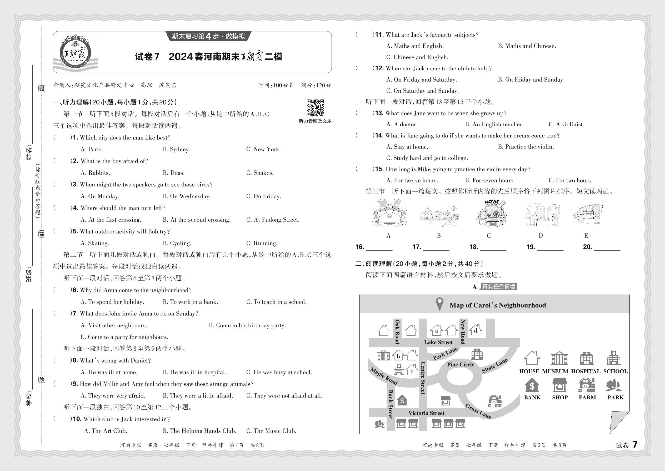 2024春下册七年级英语译林牛津版 河南期末王朝霞二模