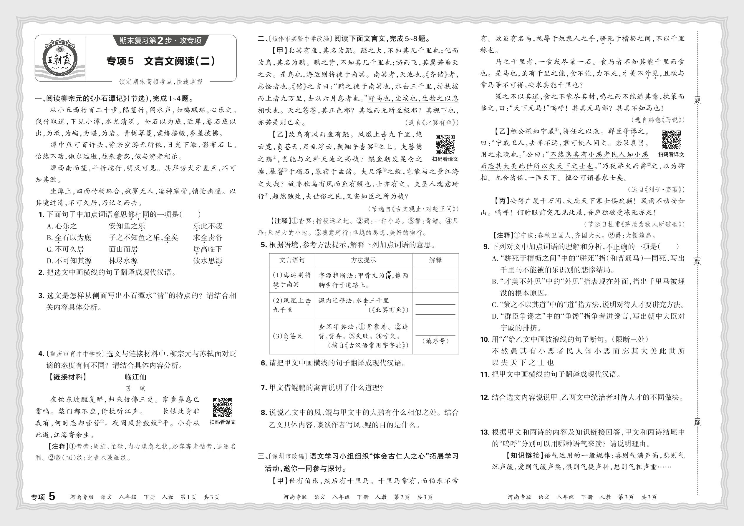 2024春下册八年级语文人教版 期末专项卷河南版·文言文阅读(二)【5】