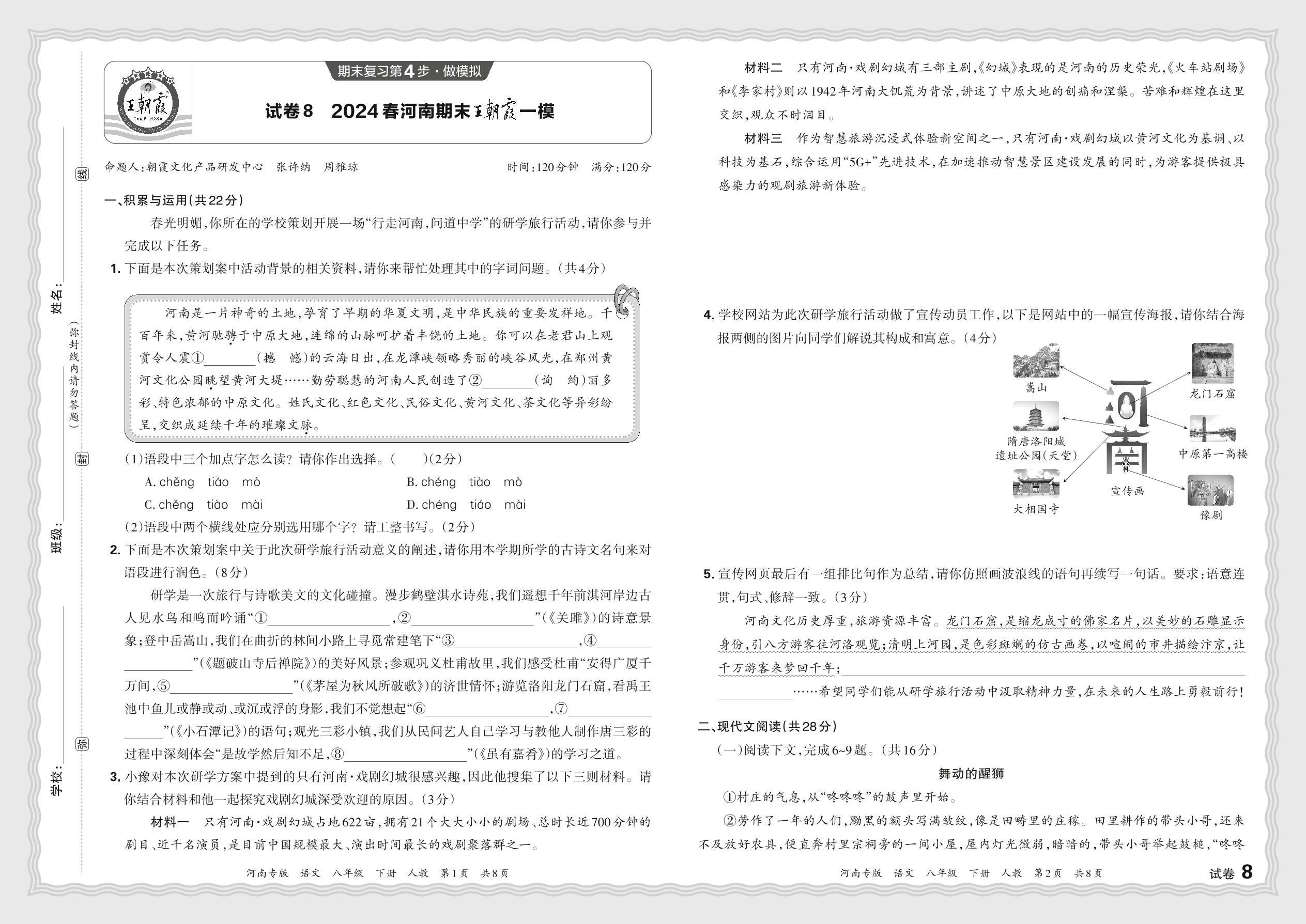 2024春下册八年级语文人教版 河南期末王朝霞一模