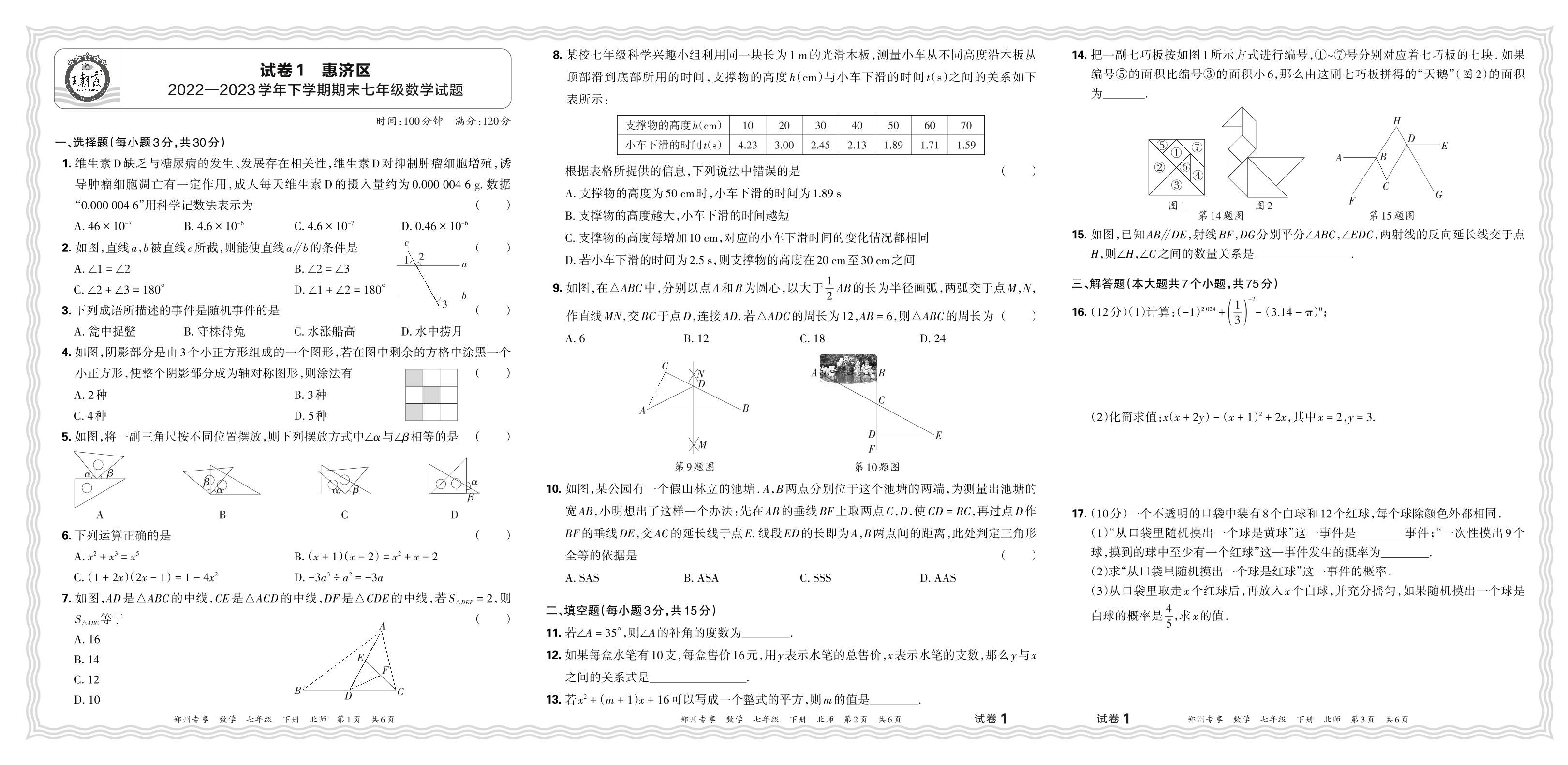 七年级数学北师版下册期末卷