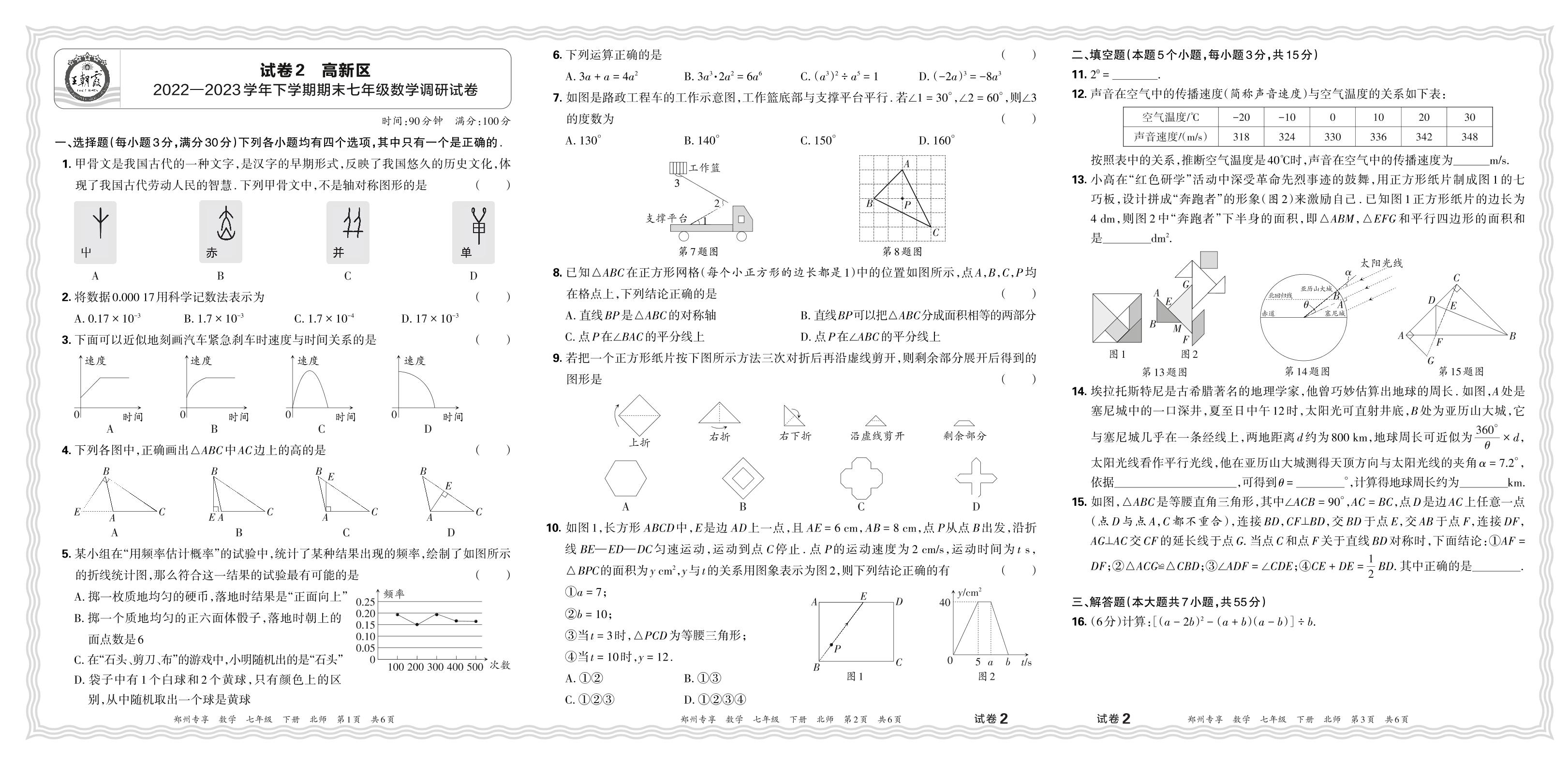 河南省郑州市高新区2022-2023学年下学期期末七年级数学调研试卷(北师版)【2】