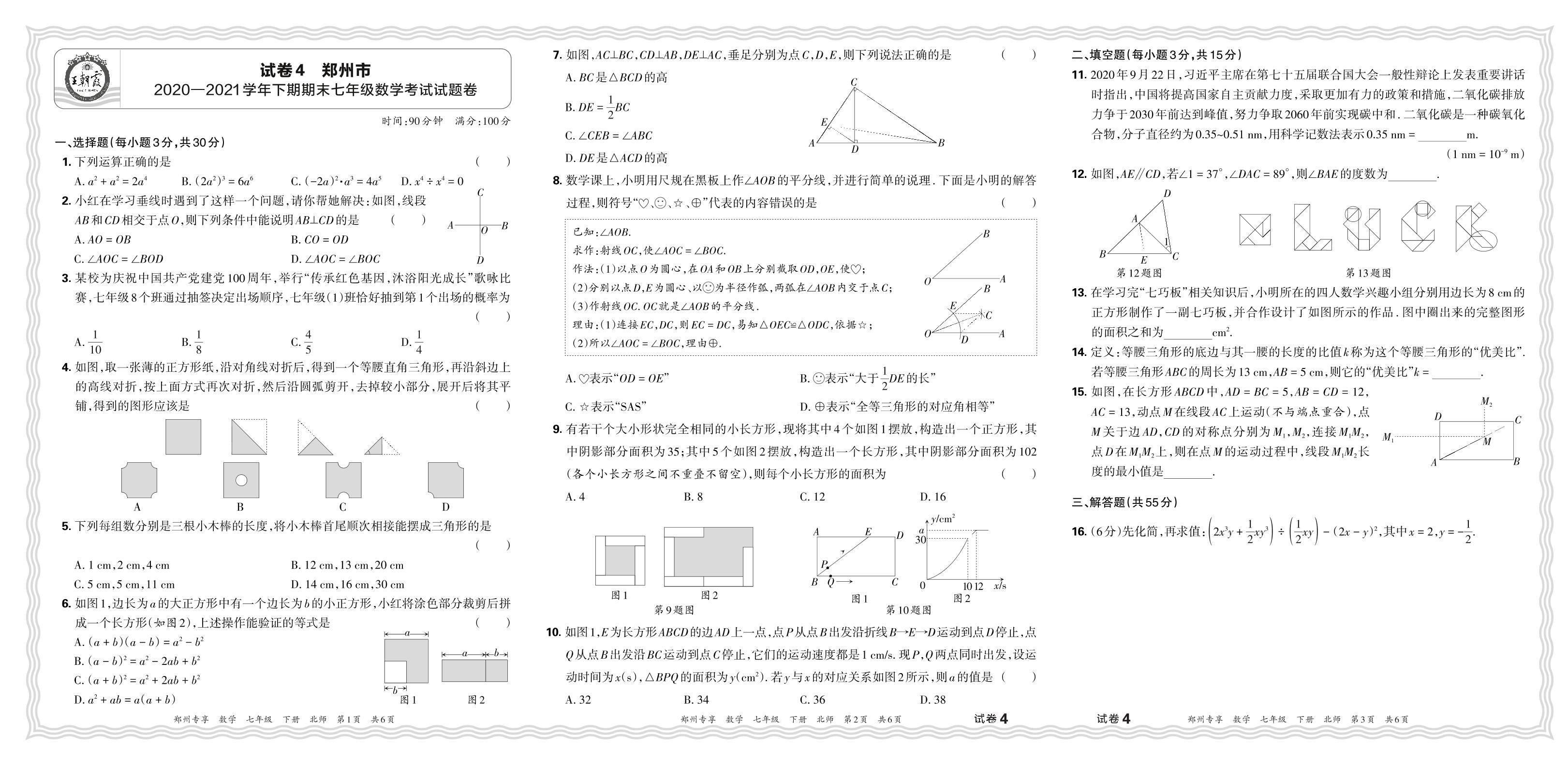 河南省郑州市2020-2021学年下期期末七年级数学考试试题卷(北师版)【4】