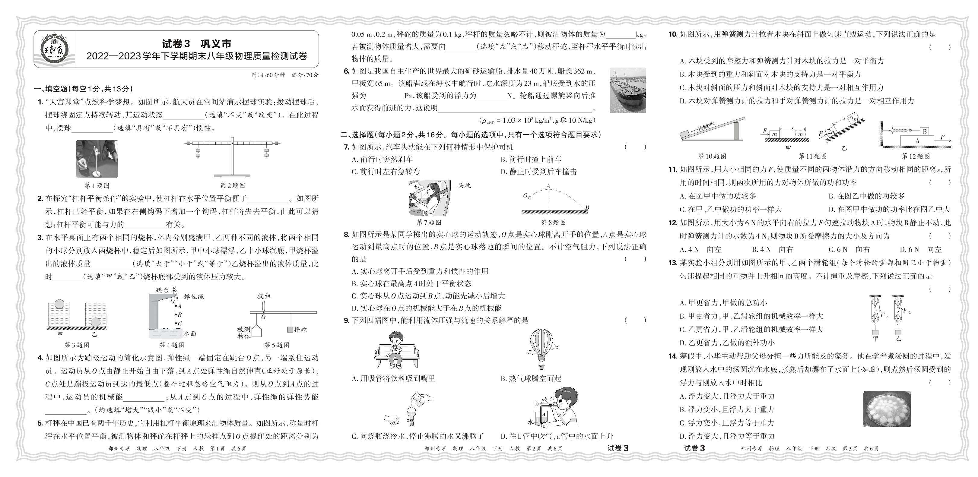 八年级物理人教版下册期末卷
