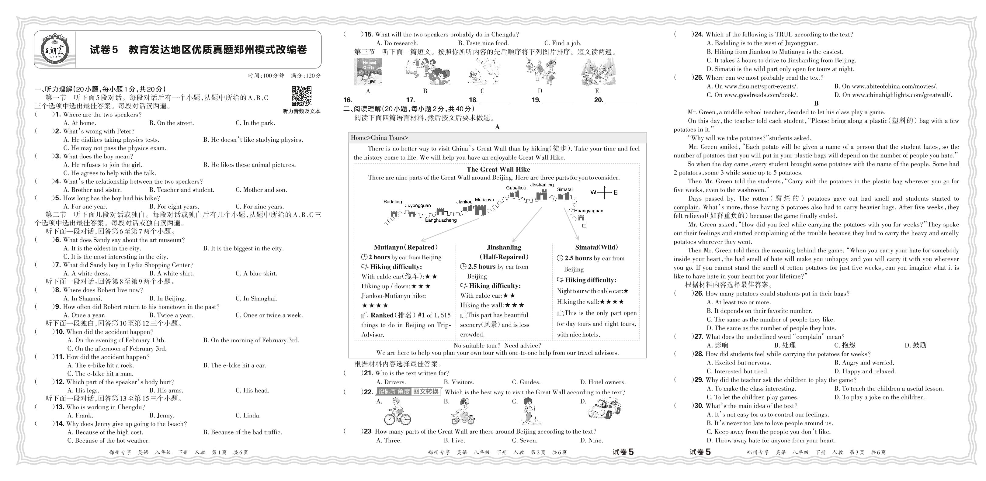 2024年春教育发达地区优质真题郑州模式改编卷八年级下册期末英语(人教版)【5】