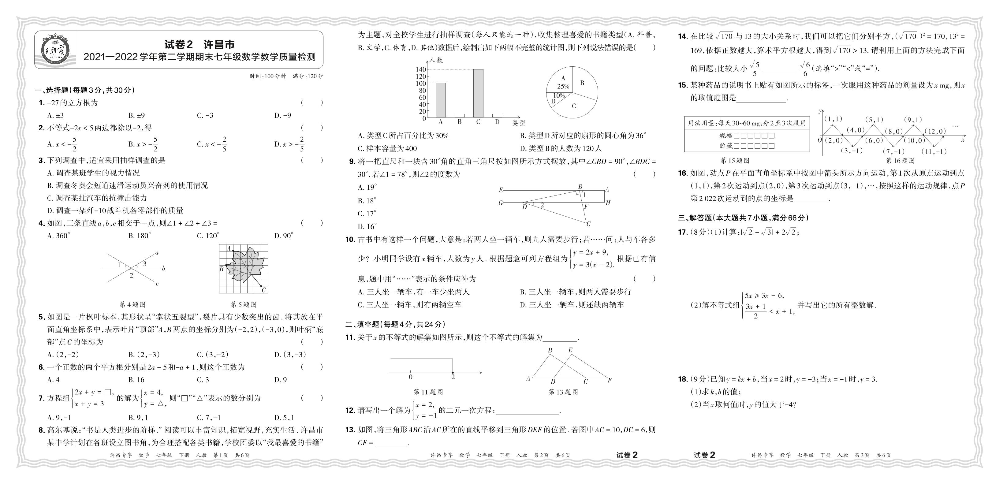 河南省许昌市2021-2022学年第二学期期末七年级数学教学质量检测(人教版)【2】