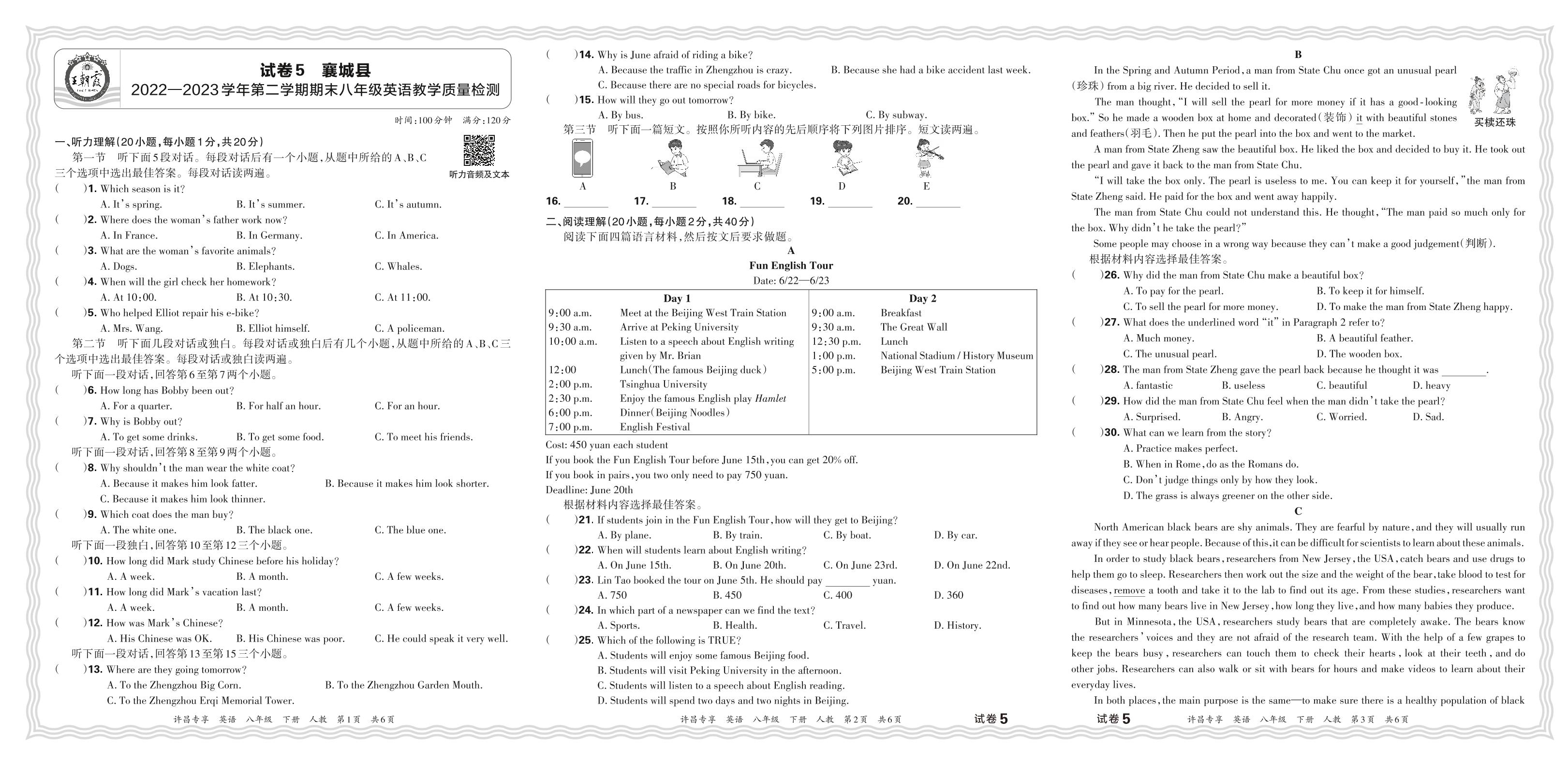 河南省许昌市襄城县2022-2023学年第二学期期末八年级英语教学质量检测(人教版)【5】