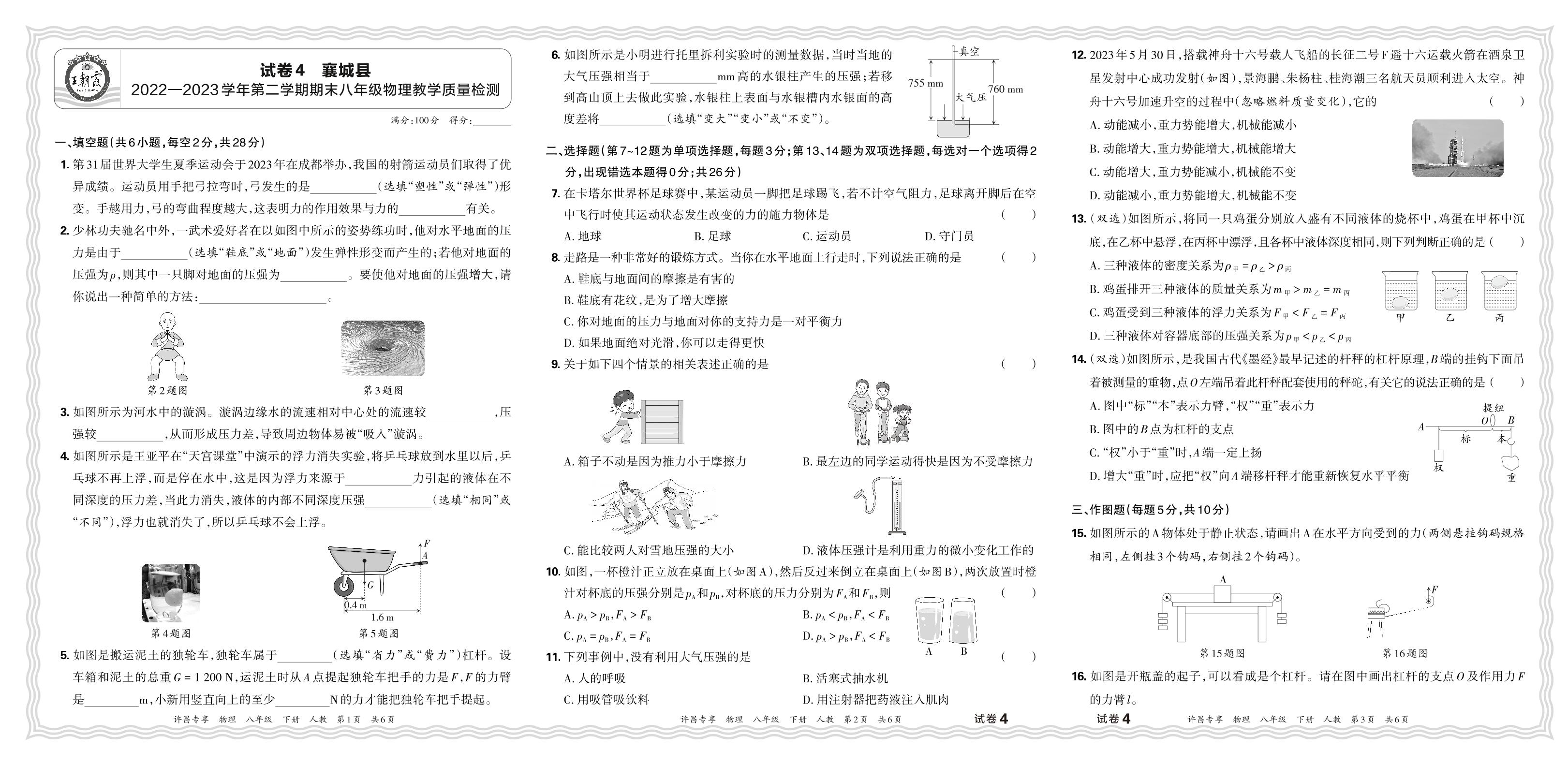 八年级物理人教版下册期末卷