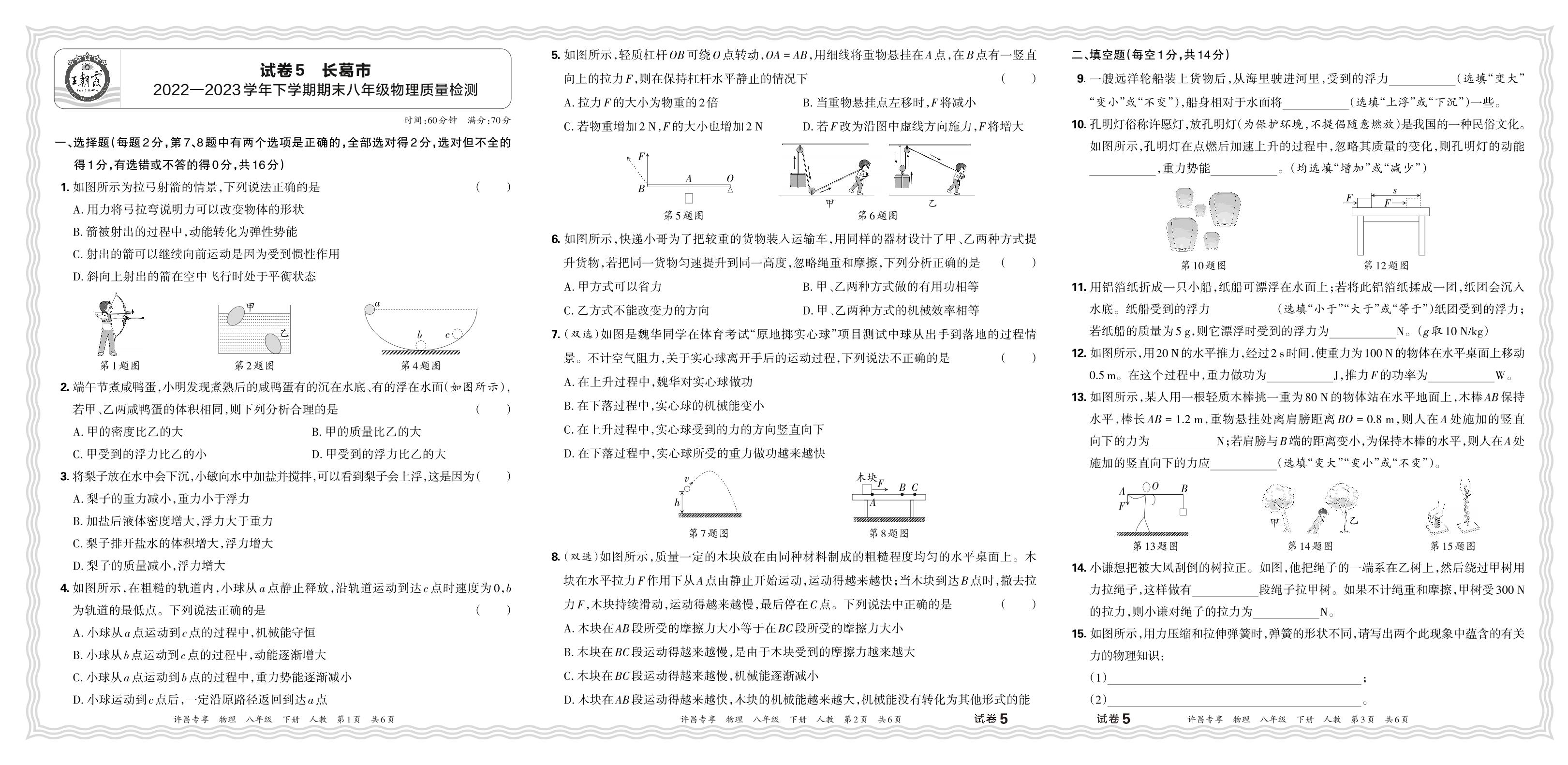 河南省许昌市长葛市2022-2023学年下学期期末八年级物理质量检测(人教版)【5】