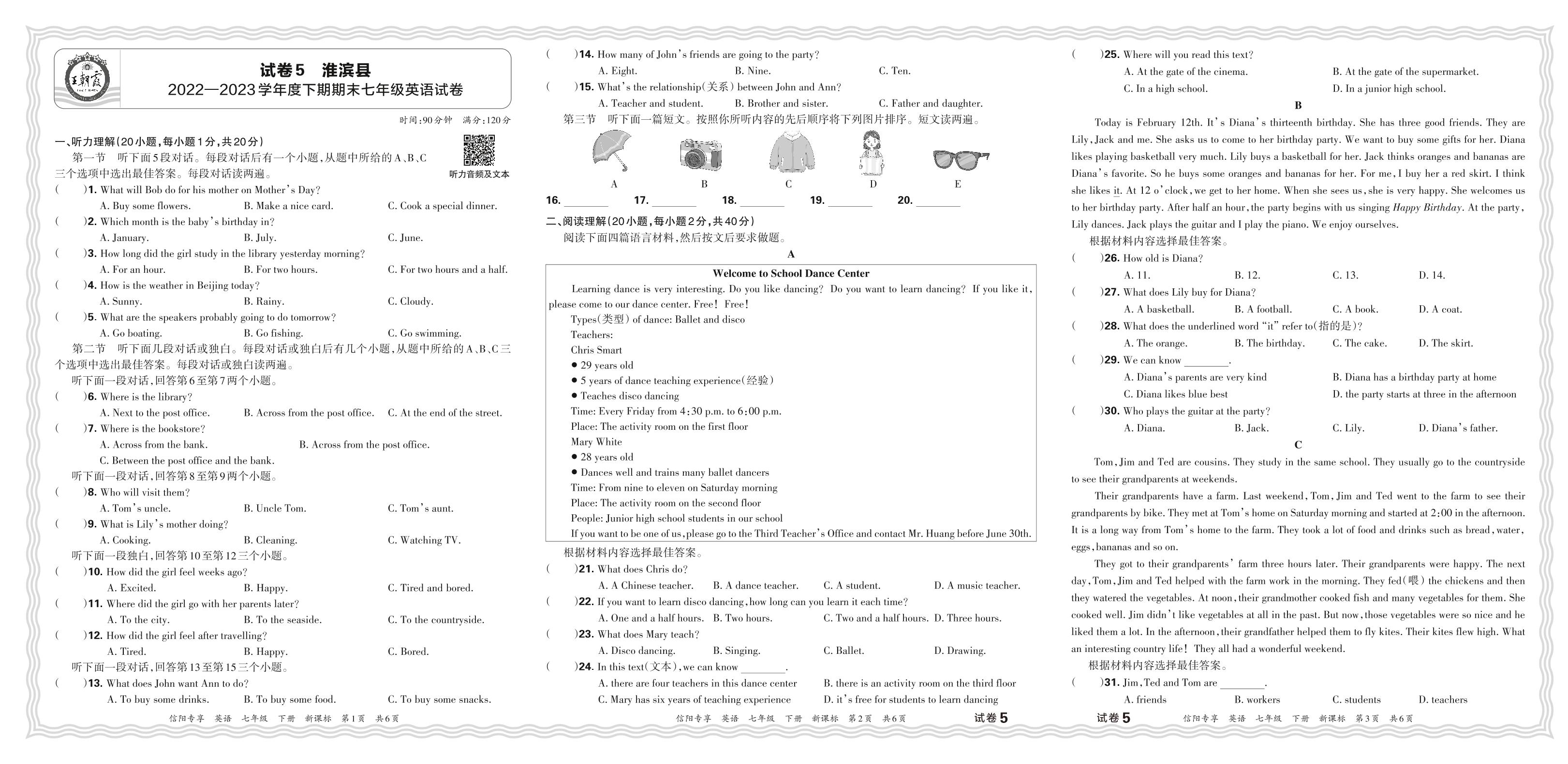 河南省信阳市淮滨县2022-2023学年度下期期末七年级英语试卷(新课标版)【5】