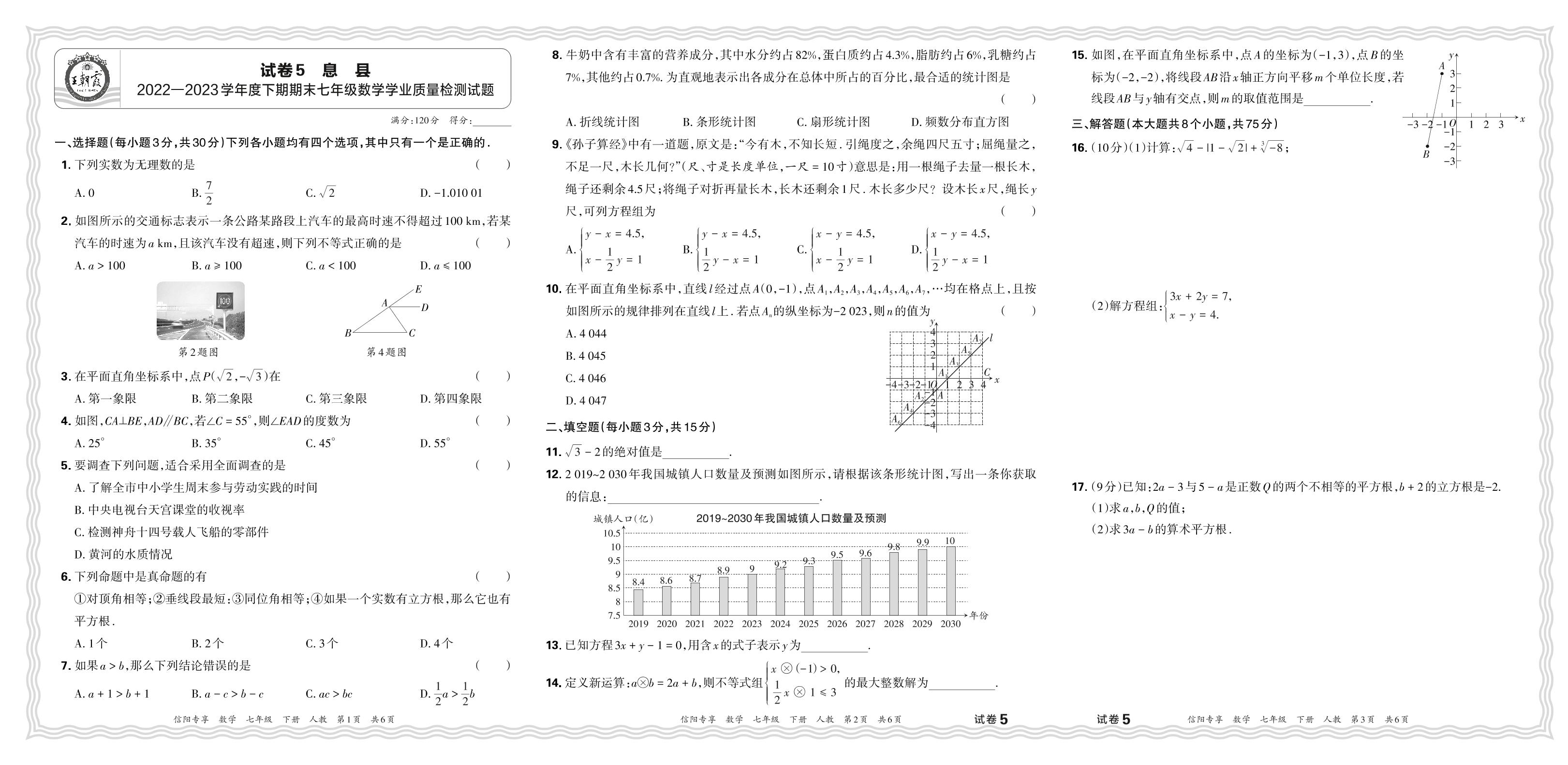 河南省信阳市息县2022-2023学年度下期期末七年级数学学业质量检测试题(人教版)【5】