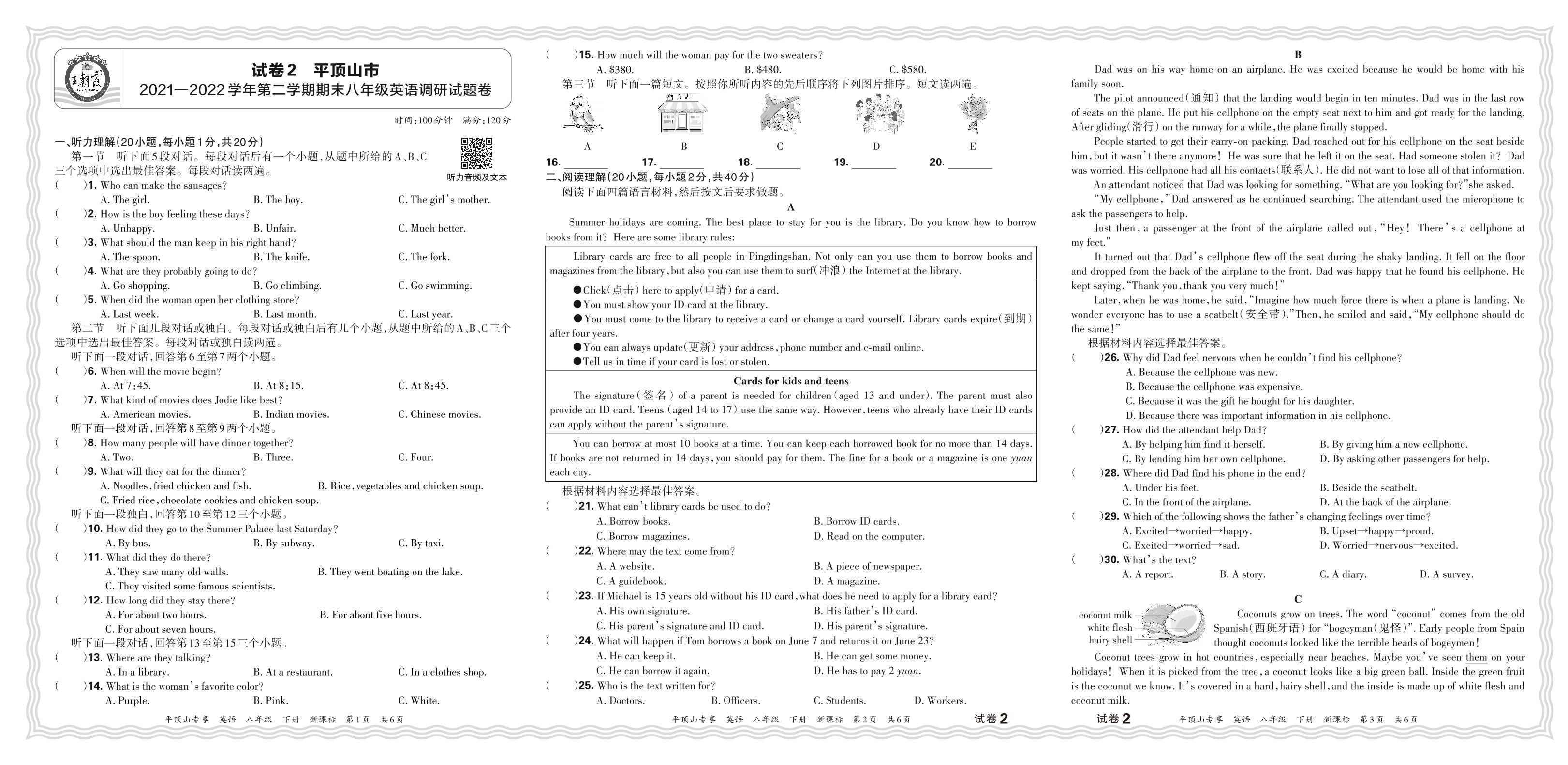 河南省平顶山市2021-2022学年第二学期期末八年级英语调研试题卷(新课标版)【2】