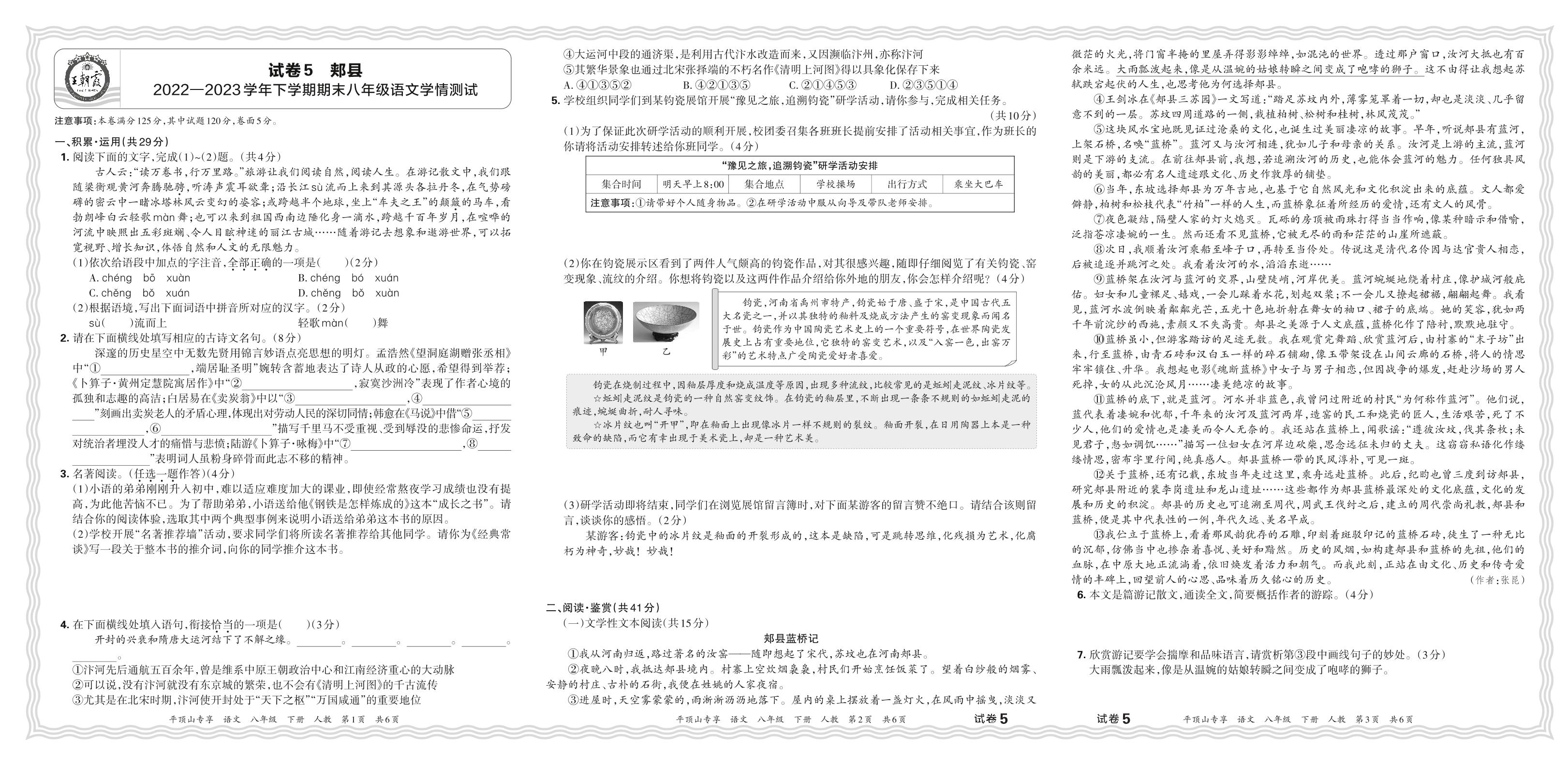 河南省平顶山市郏县2022-2023学年下学期期末八年级语文学情测试(人教版)【5】