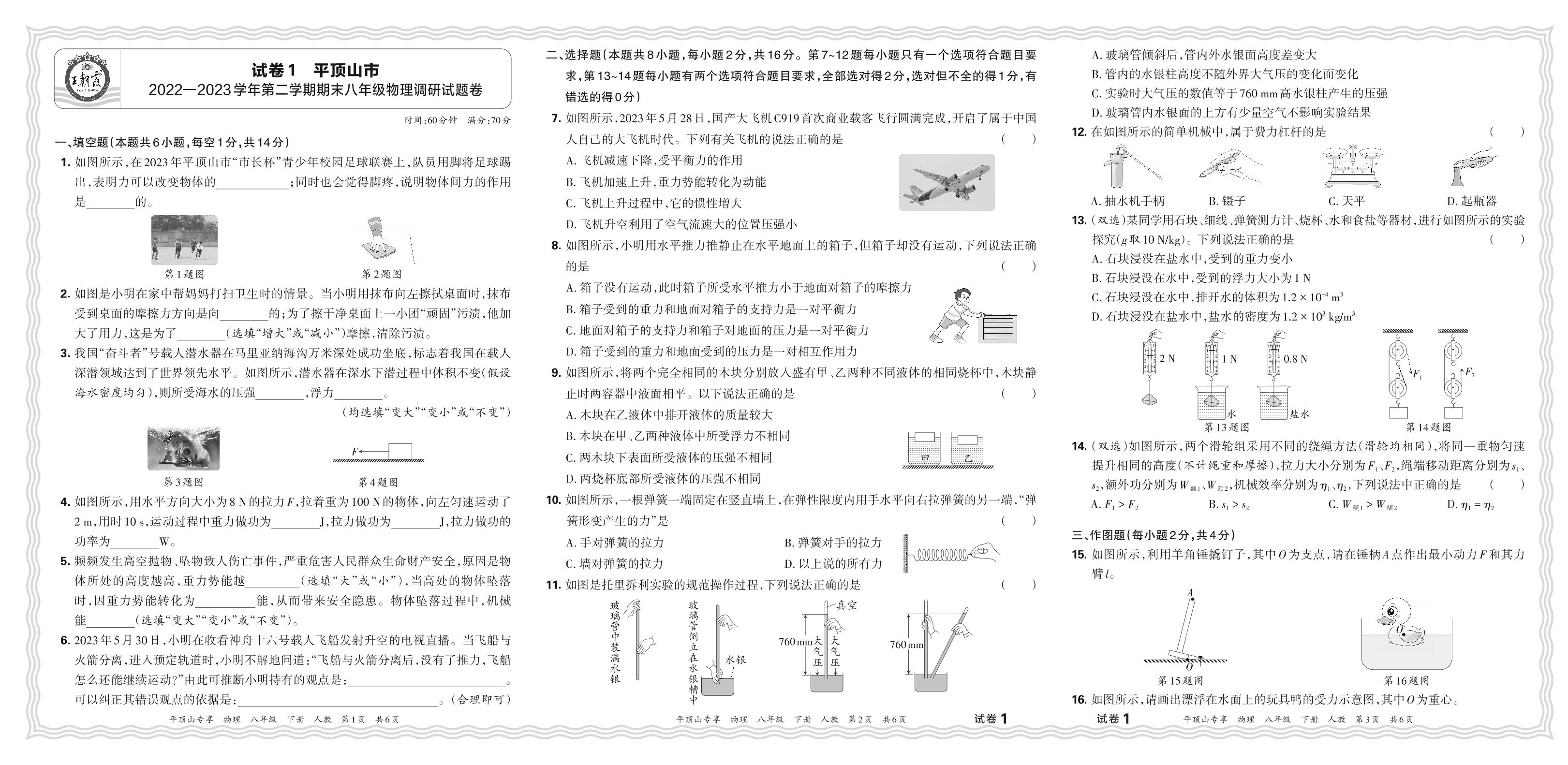 八年级物理人教版下册期末卷