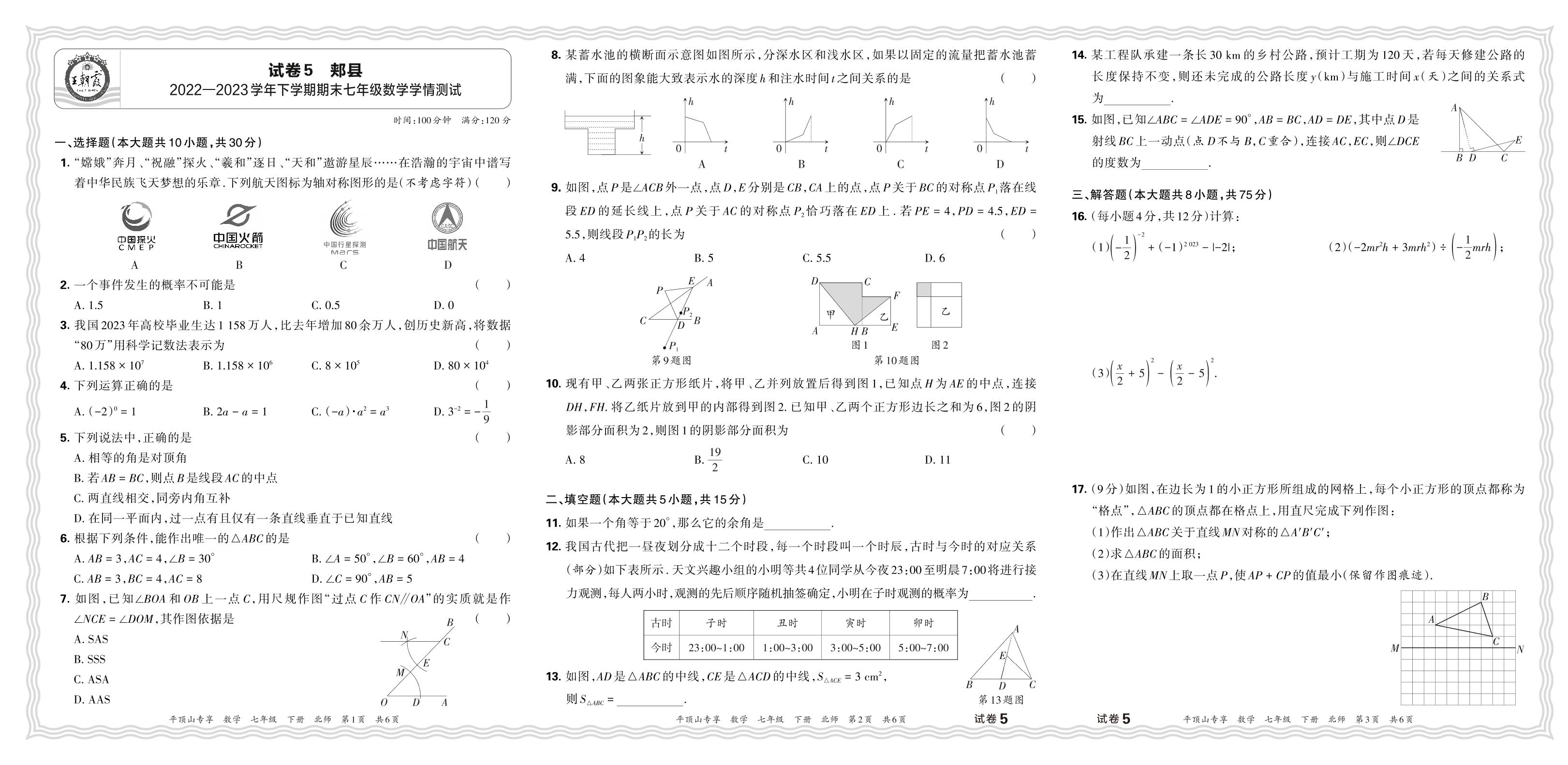 七年级数学北师版下册期末卷