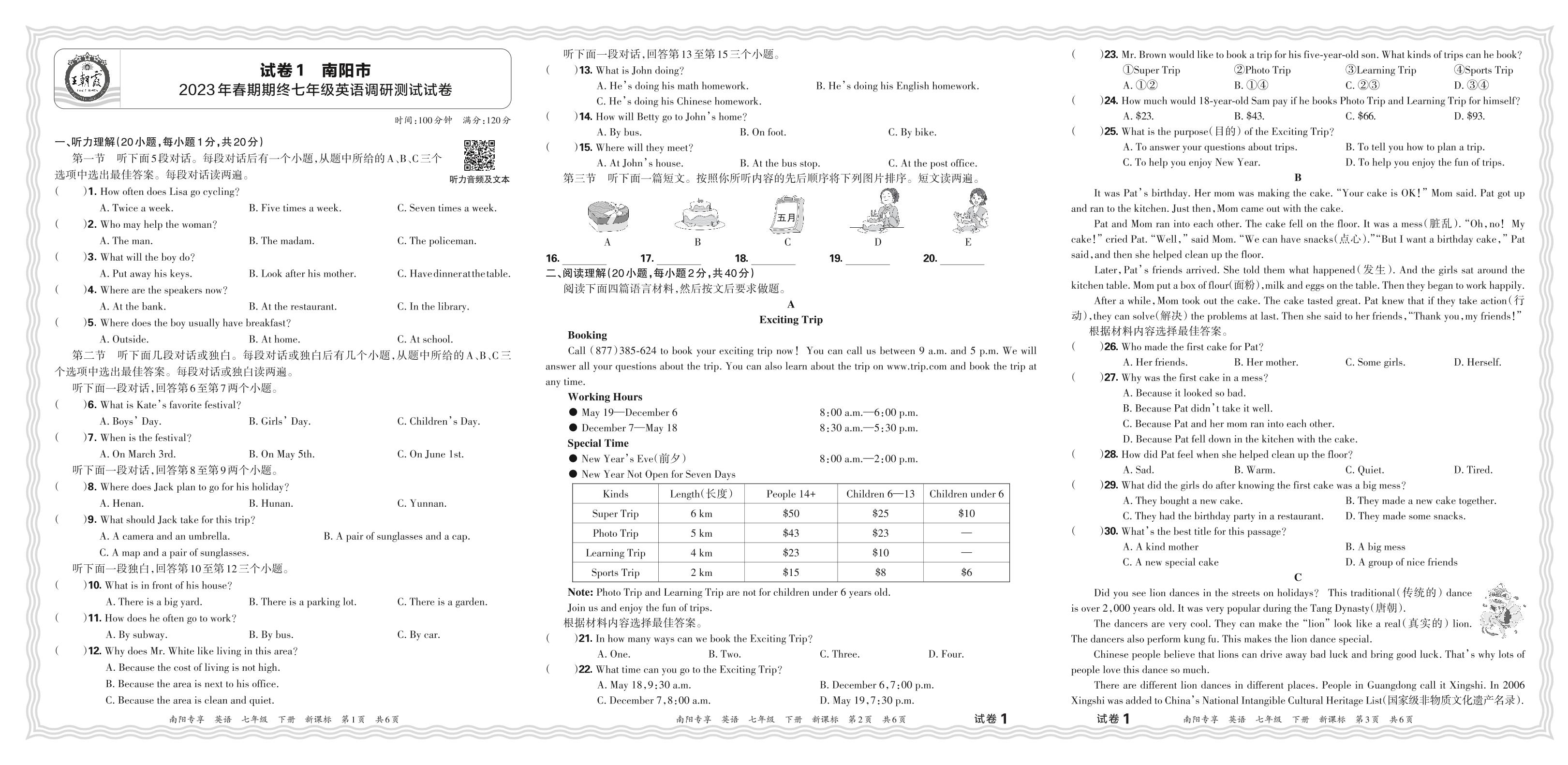 河南省南阳市2023年春期期终七年级英语调研测试试卷(新课标版)【1】
