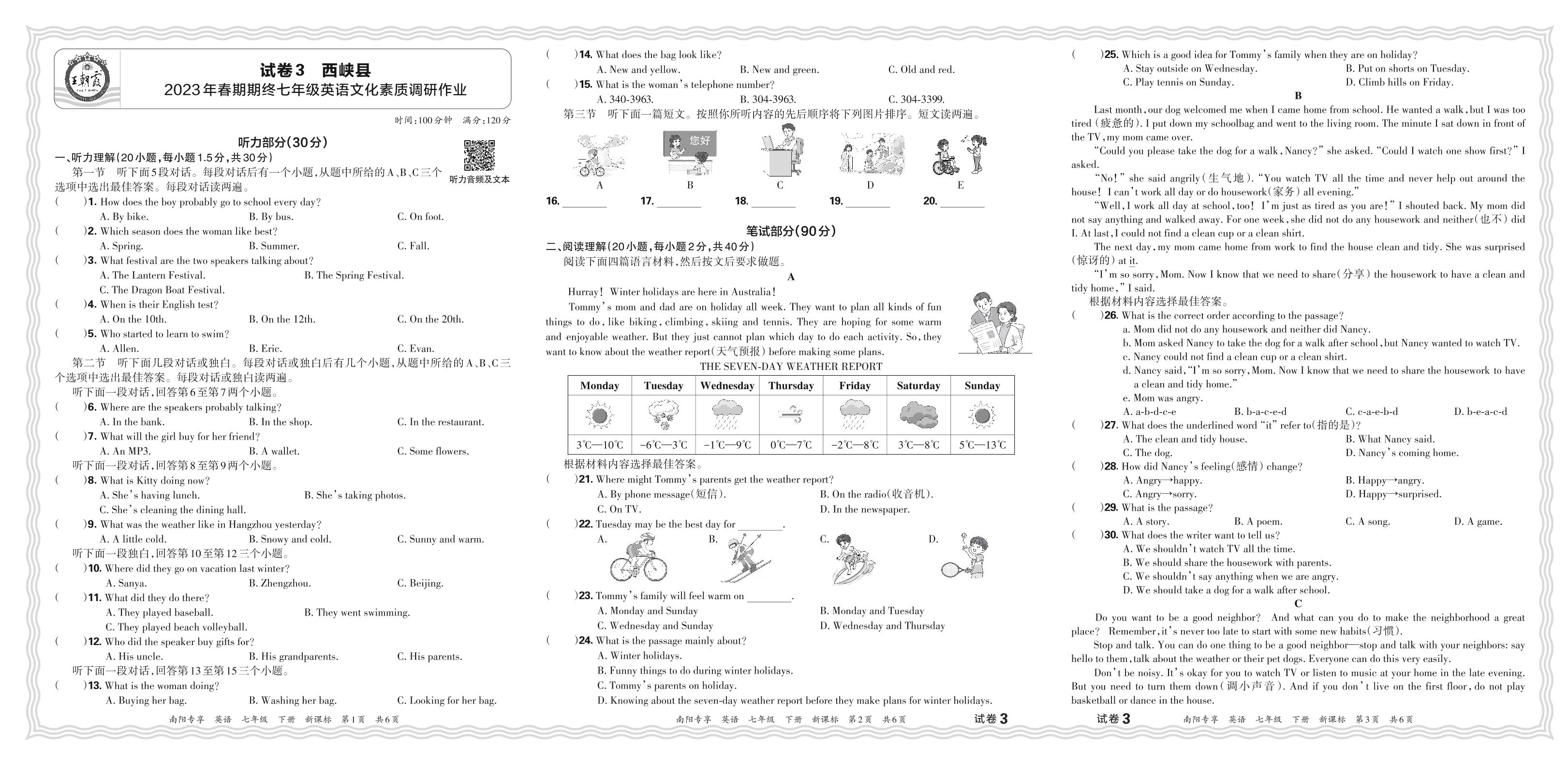 河南省南阳市西峡县2023年春期期终七年级英语文化素质调研作业(新课标版)【3】