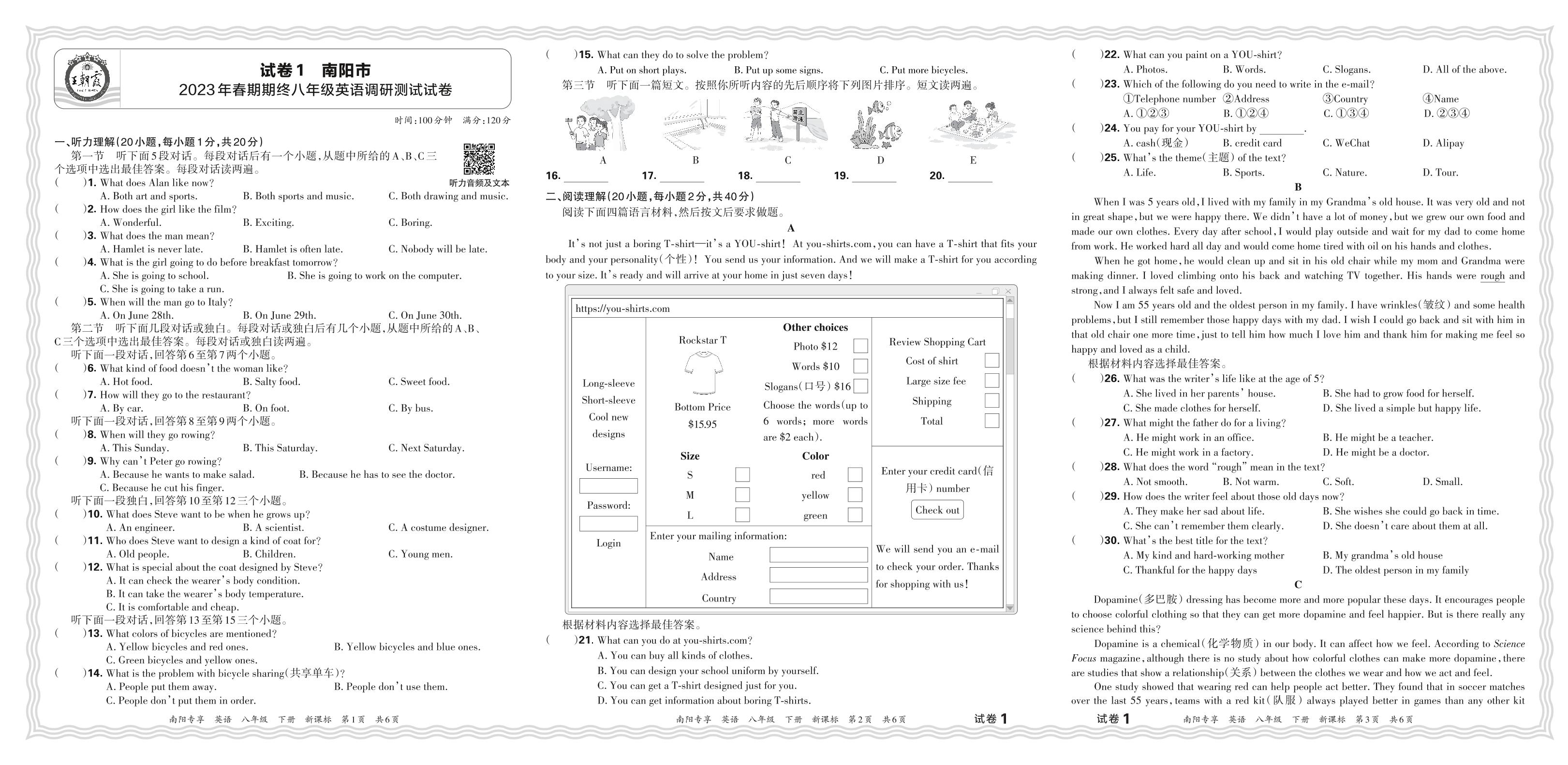 河南省南阳市2023年春期期终八年级英语调研测试试卷(新课标版)【1】