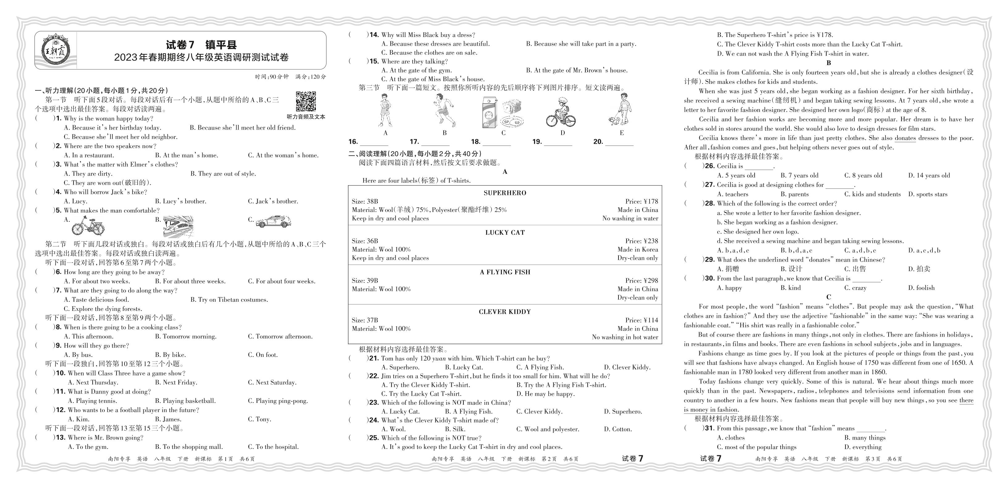 河南省南阳市镇平县2023年春期期终八年级英语调研测试试卷(新课标版)【7】