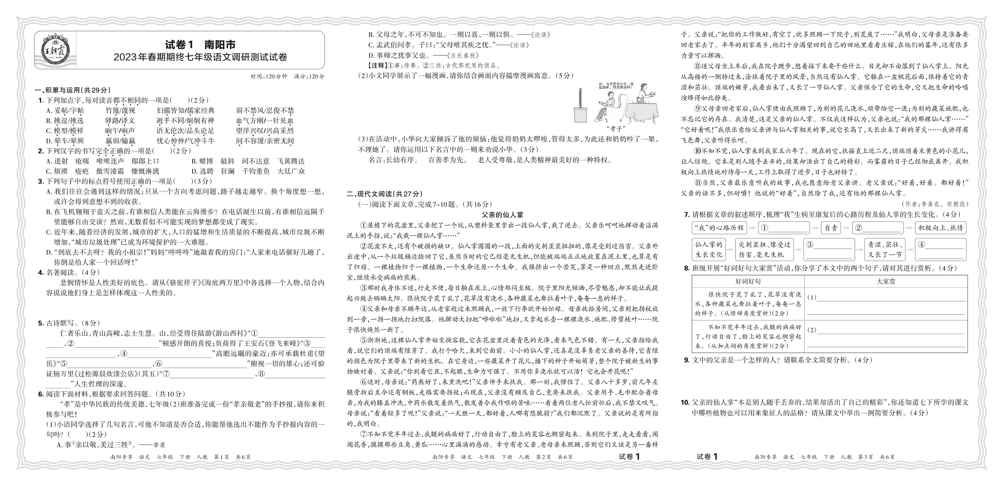 河南省南阳市2023年春期期终七年级语文调研测试试卷(人教版)【1】