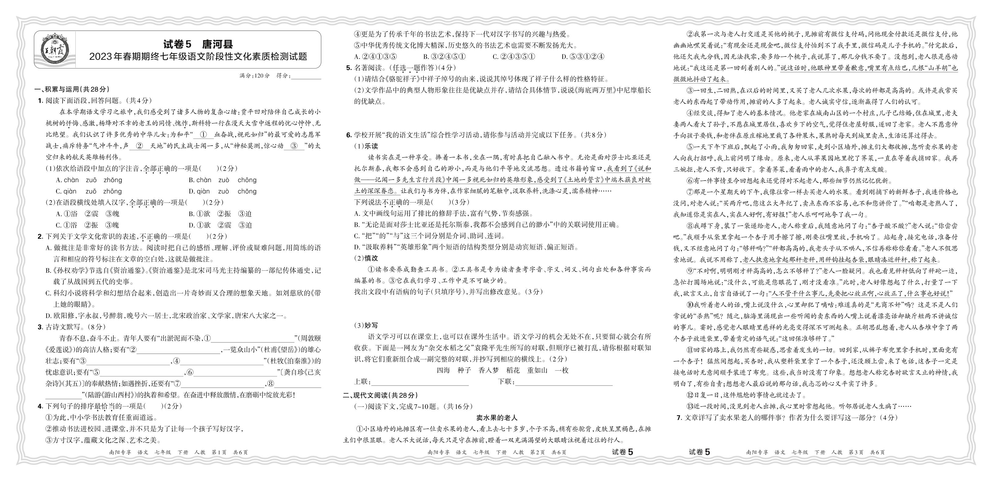 七年级语文人教版下册期末卷