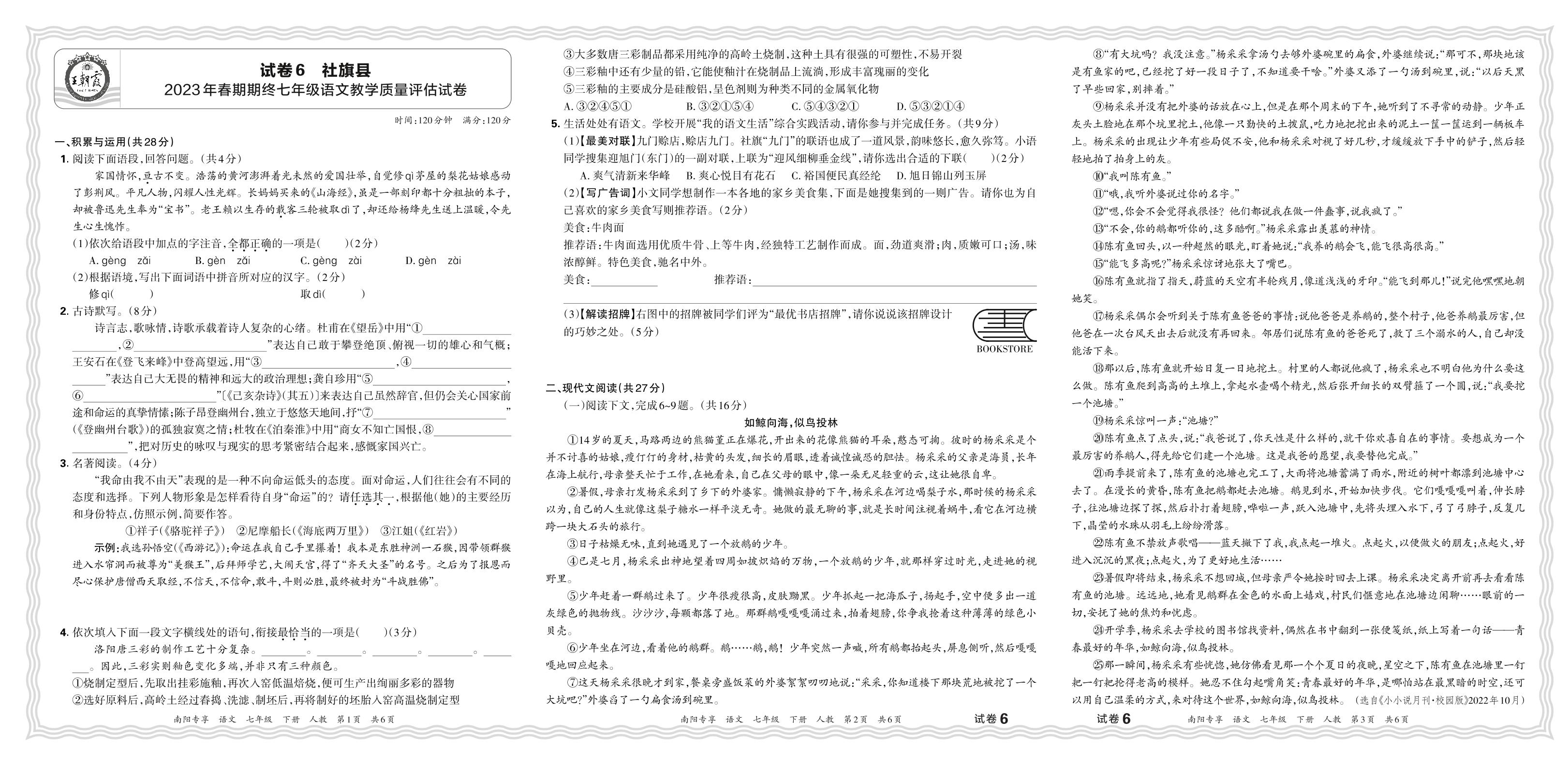 河南省南阳市社旗县2023年春期期终七年级语文教学质量评估试卷(人教版)【6】