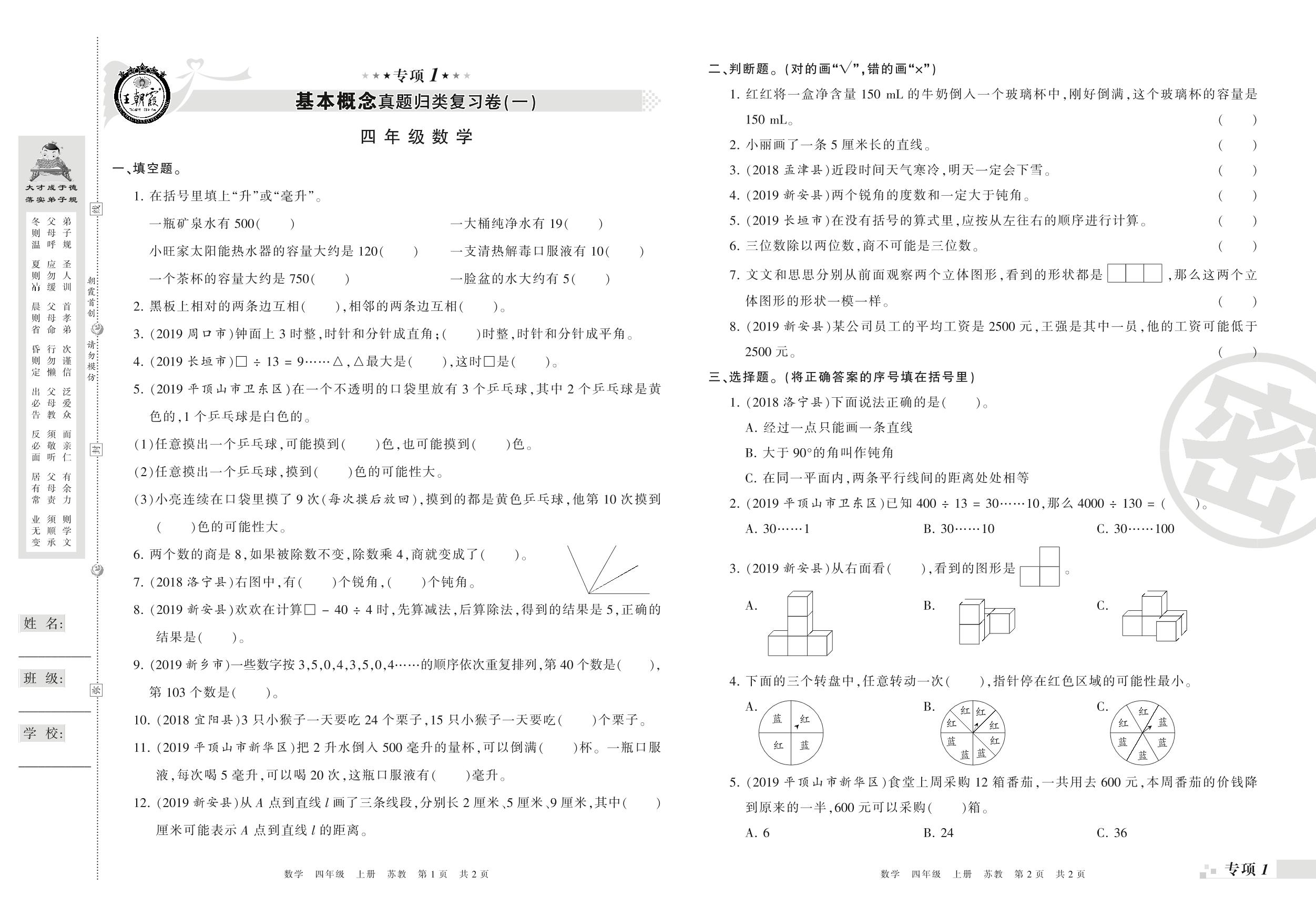 王朝霞期末专项卷——基本概念真题归类复习四年级上册数学(苏教版)_R210804144845【0】
