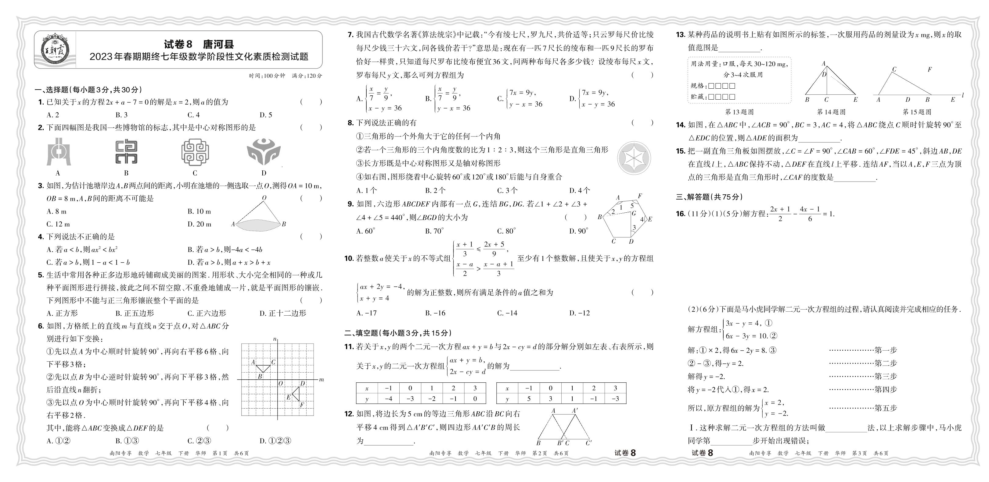 河南省南阳市唐河县2023年春期期终七年级数学阶段性文化素质检测试题(华师版)【8】