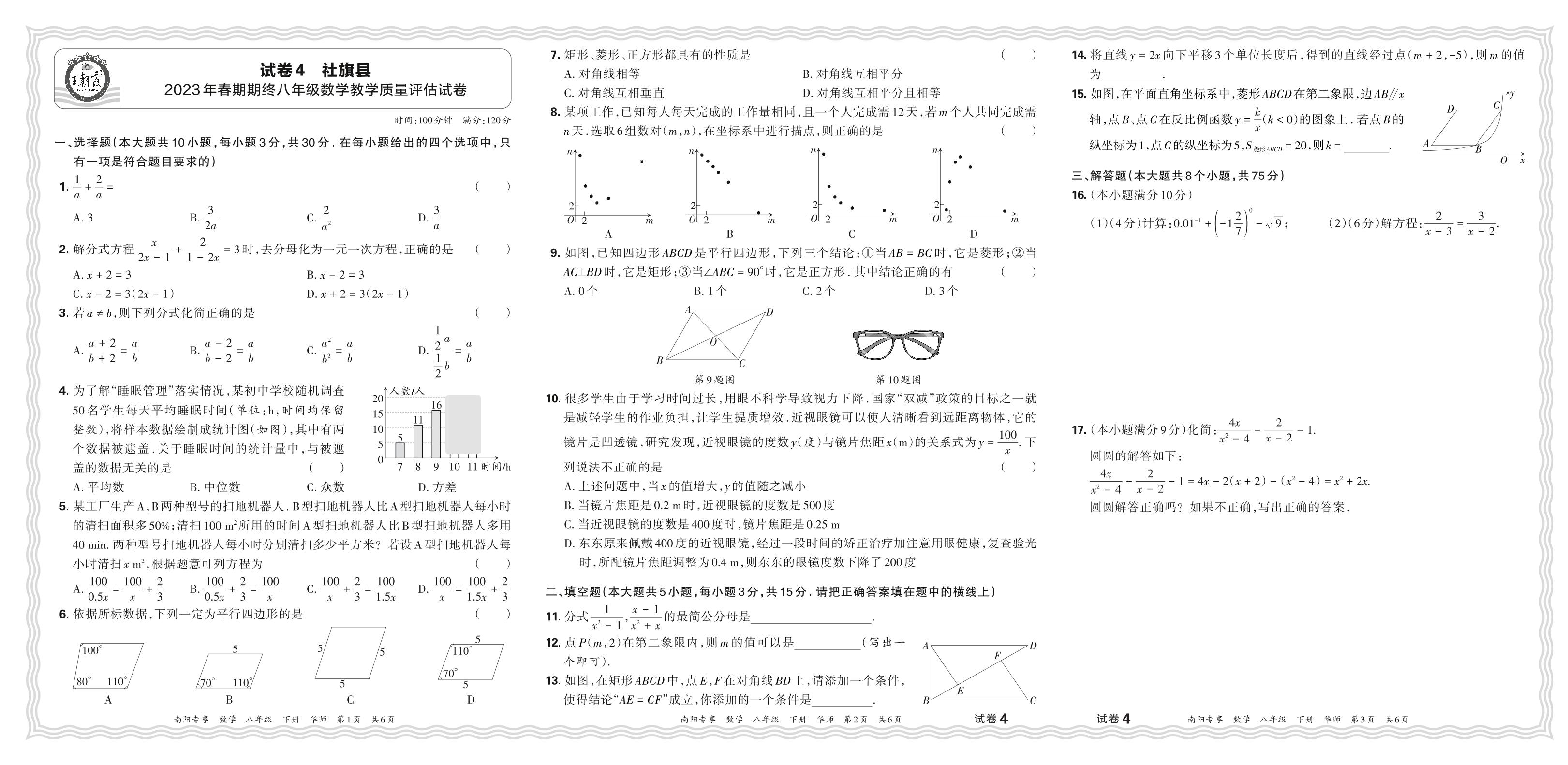 河南省南阳市社旗县2023年春期期终八年级数学质量评估试卷(华师版)【4】