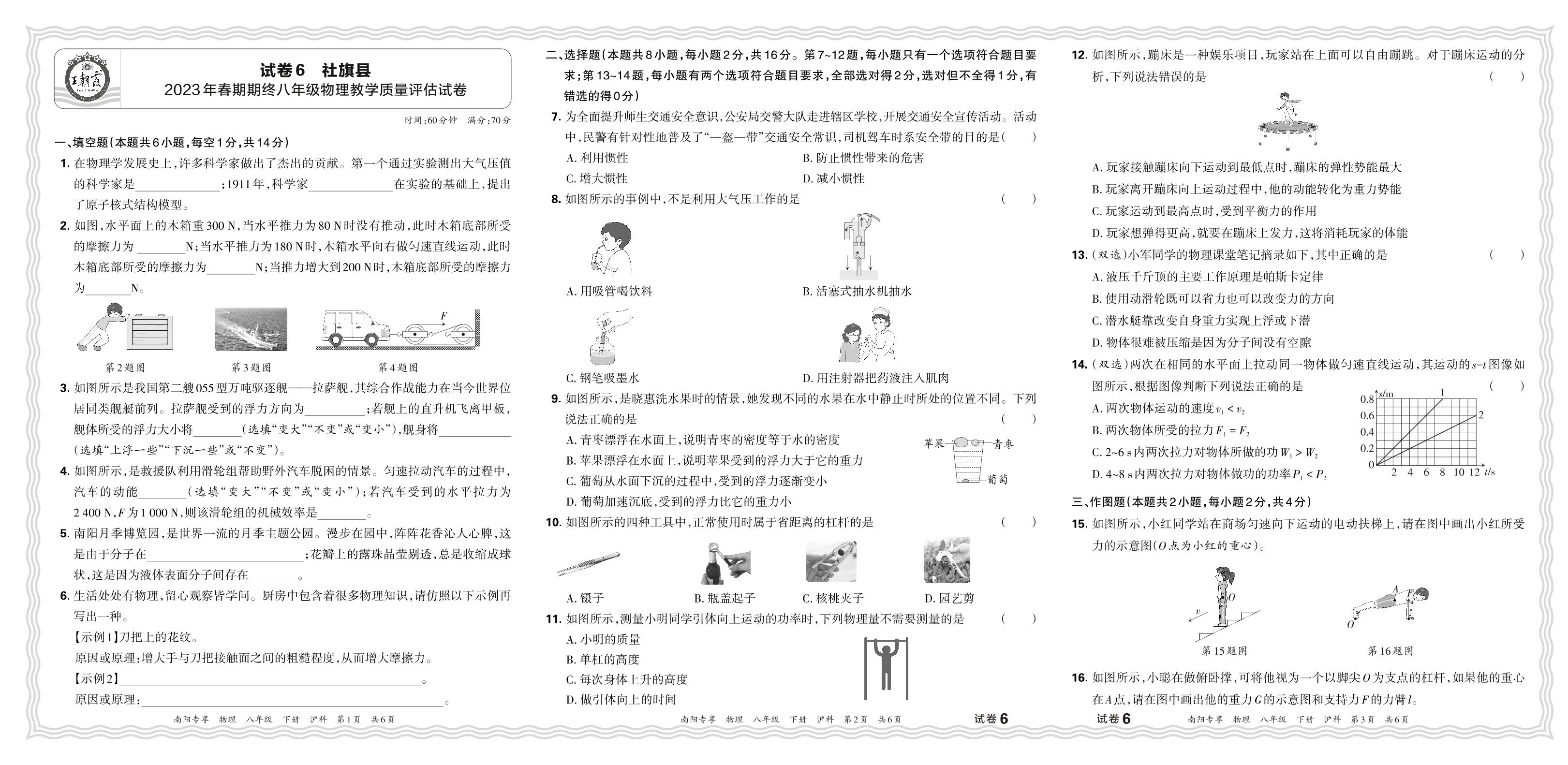 河南省南阳市社旗县2023年春期期终八年级物理教学质量评估试卷(沪科版)【6】