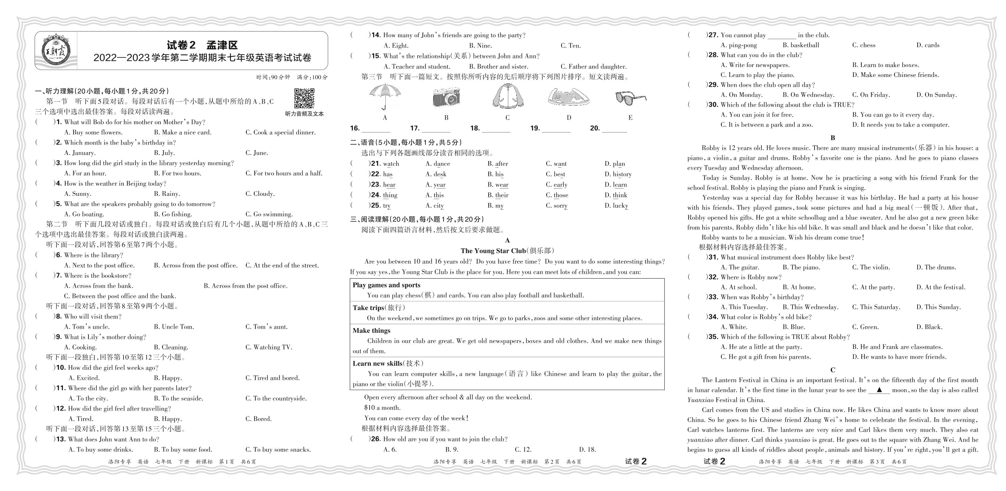 河南省洛阳市孟津区2022-2023学年第二学期期末七年级英语考试试卷(新课标版)【2】
