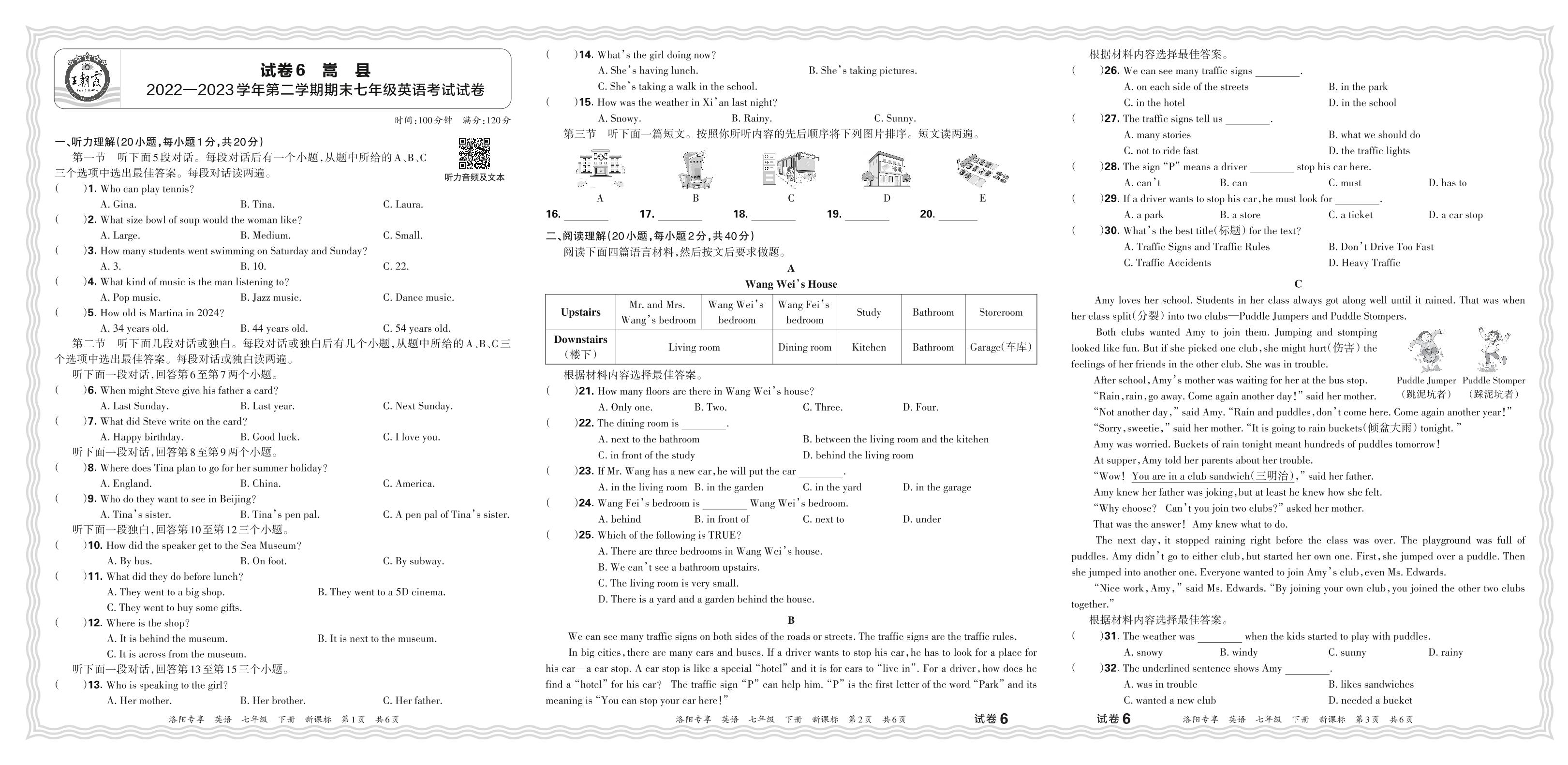 河南省洛阳市嵩县2022-2023学年第二学期期末七年级英语考试试卷(新课标版)【6】