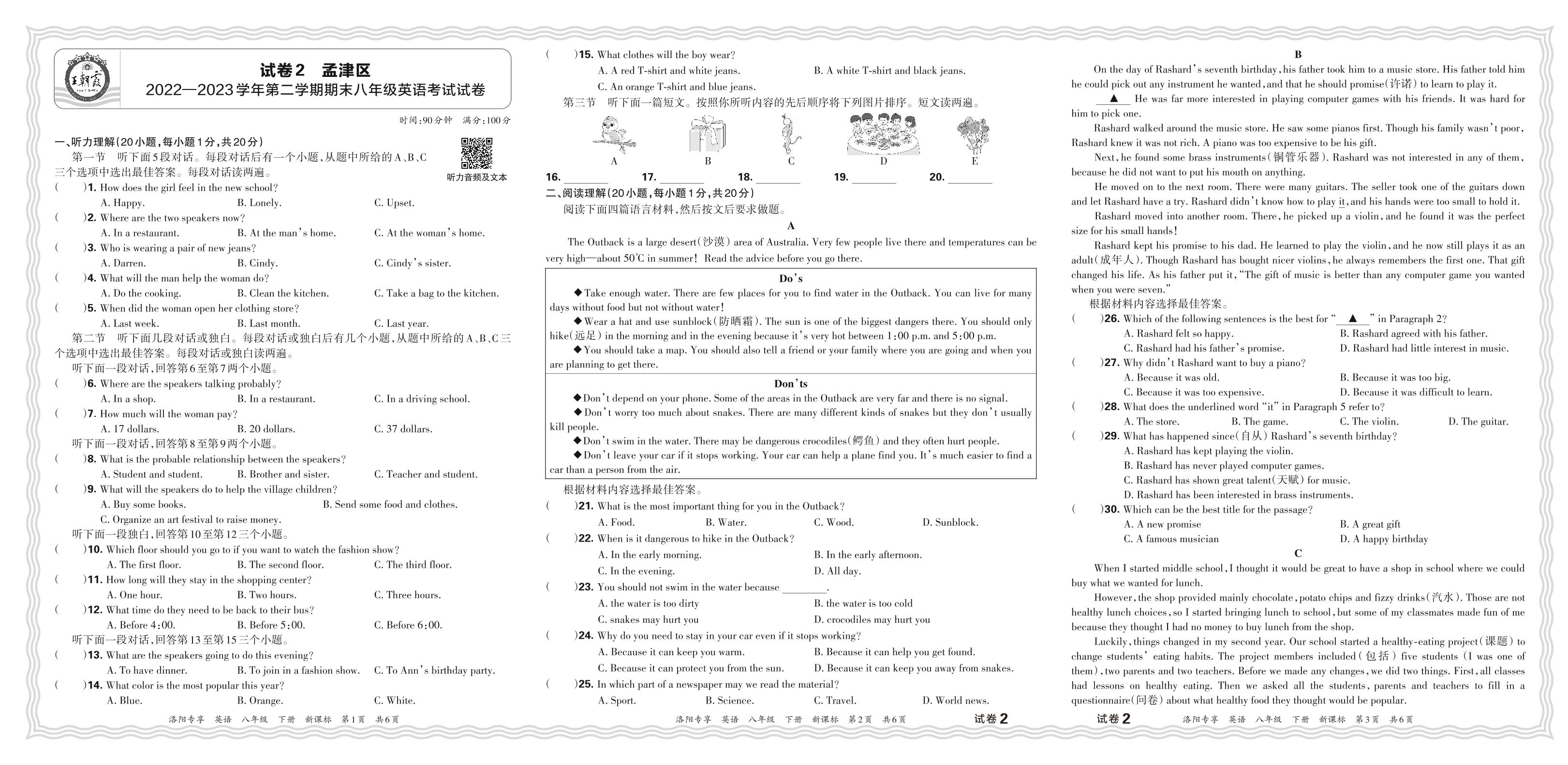 河南省洛阳市孟津区2022-2023学年第二学期期末八年级英语考试试卷(新课标版)【2】