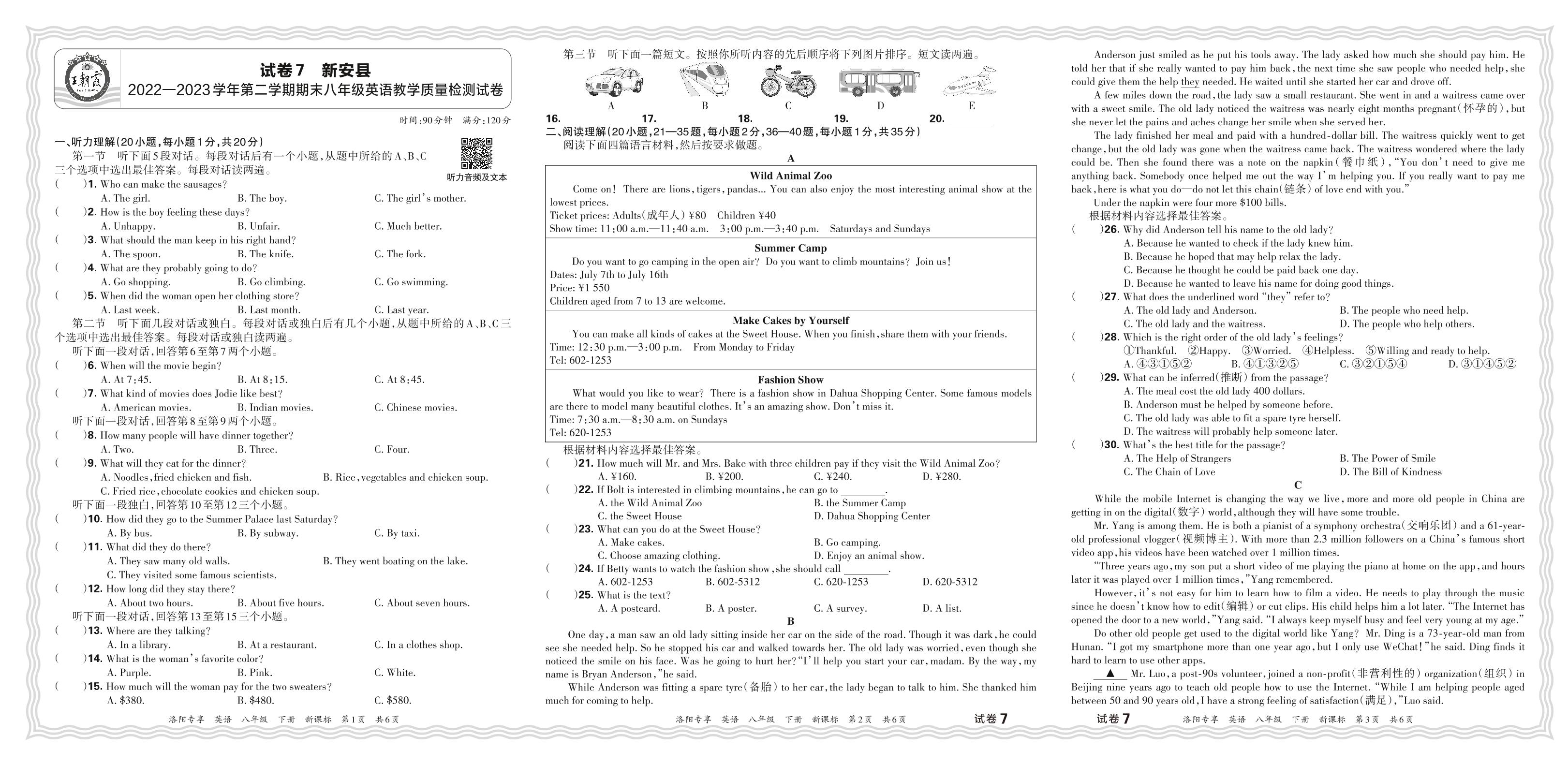 河南省洛阳市新安县2022-2023学年第二学期期末八年级英语教学质量检测试卷(新课标版)【7】