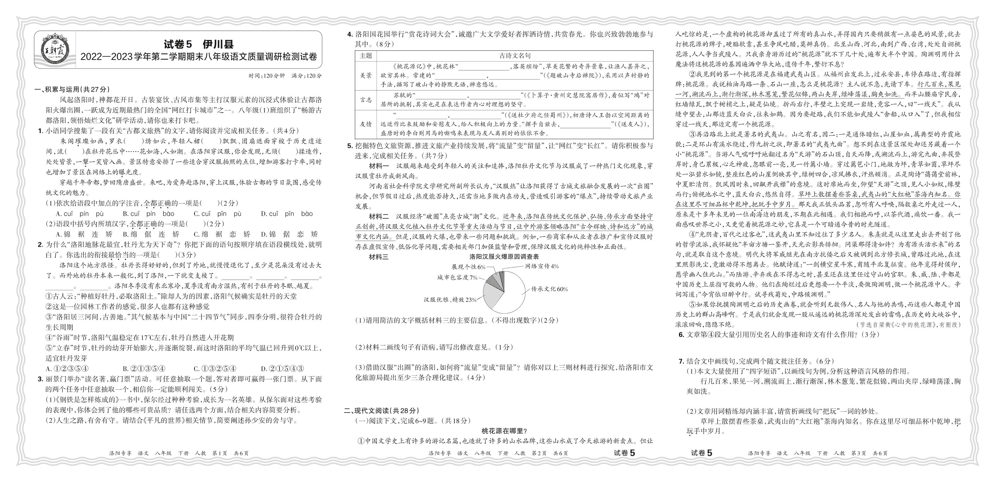 河南省洛阳市伊川县2022-2023学年第二学期期末八年级语文质量调研检测试卷(人教版)【5】