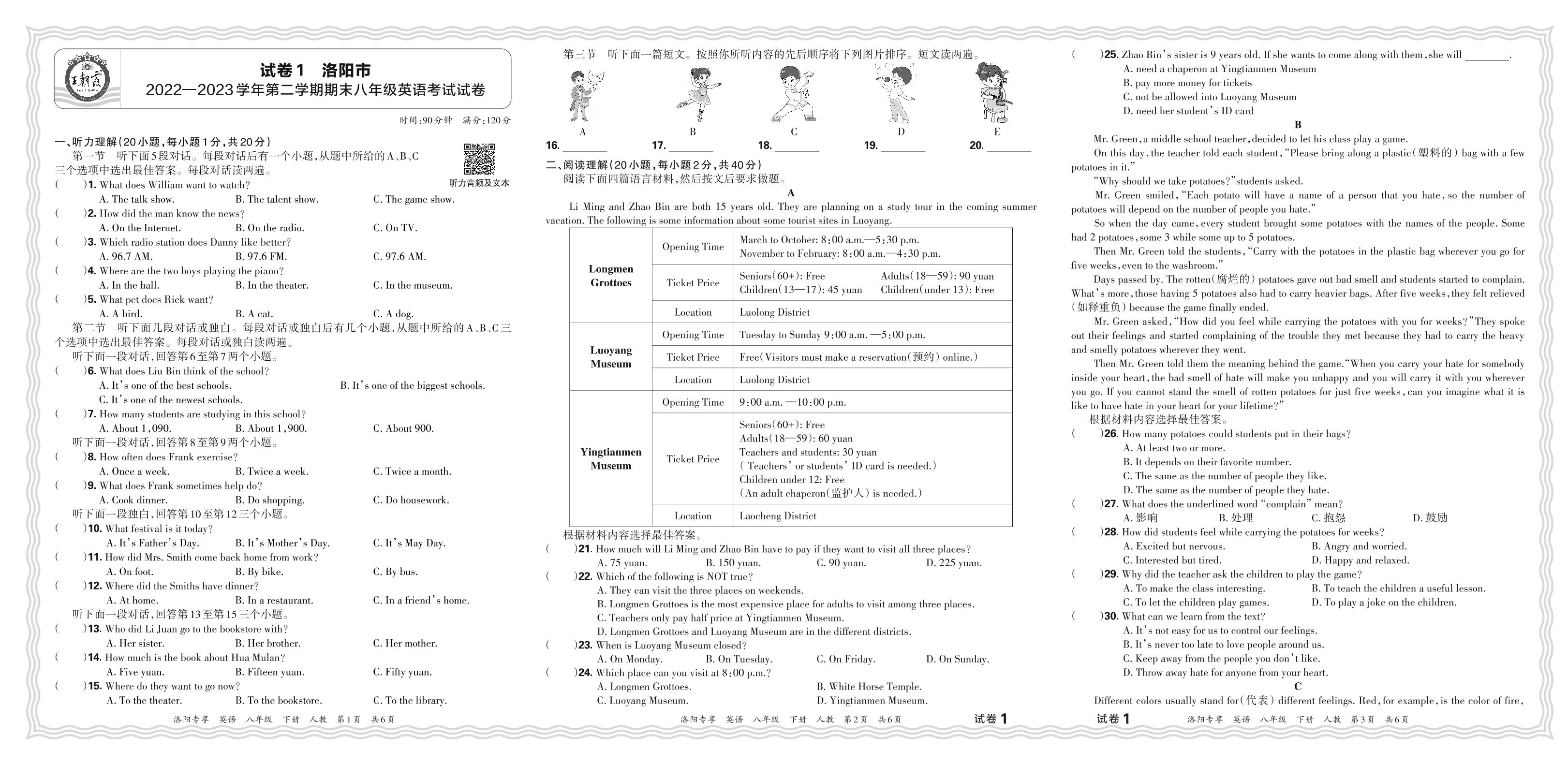 河南省洛阳市2022-2023学年第二学期期末八年级英语考试试卷(人教版)【1】