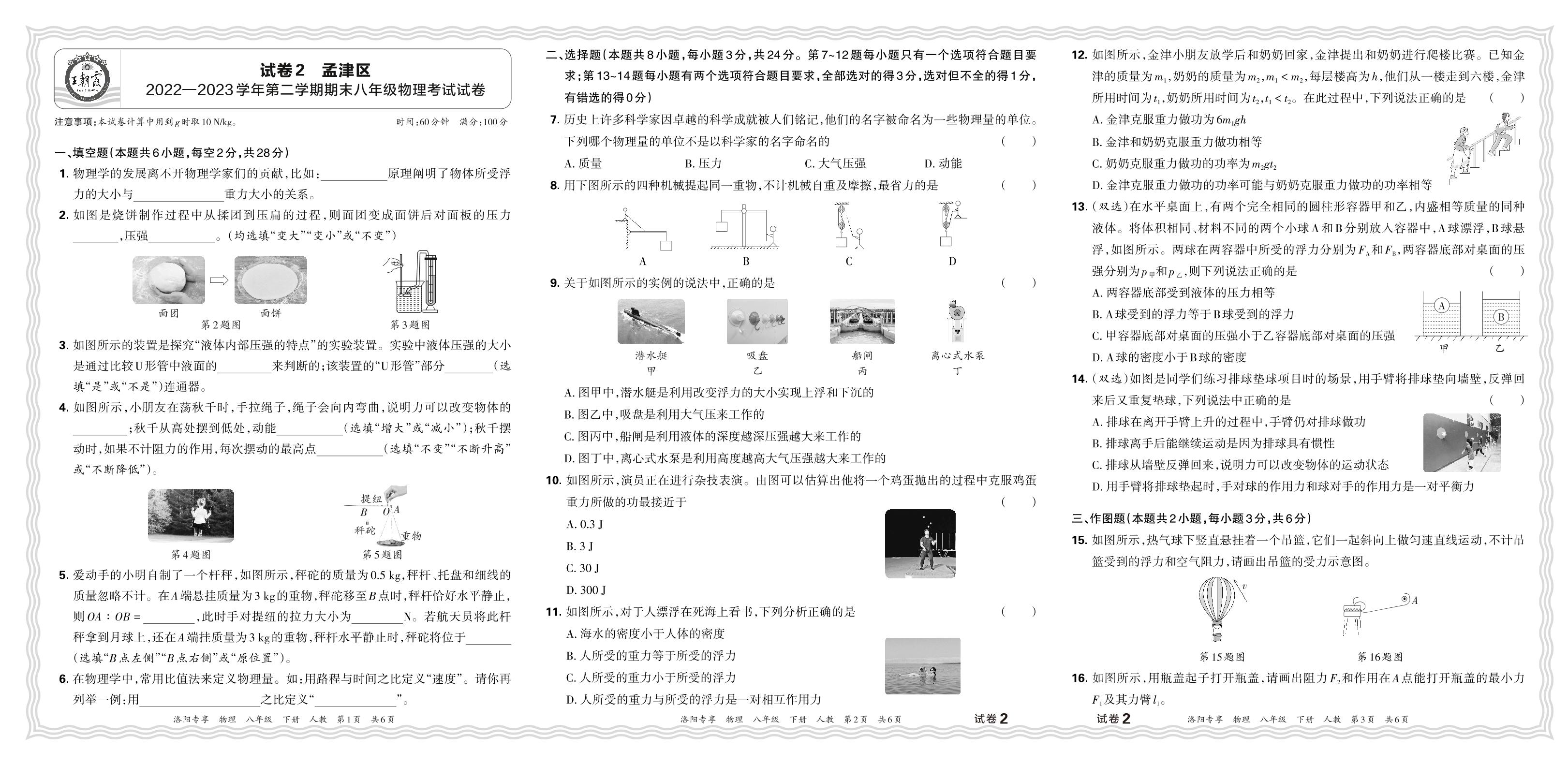 河南省洛阳市孟津区2022-2023学年第二学期期末八年级物理考试试卷(人教版)【2】