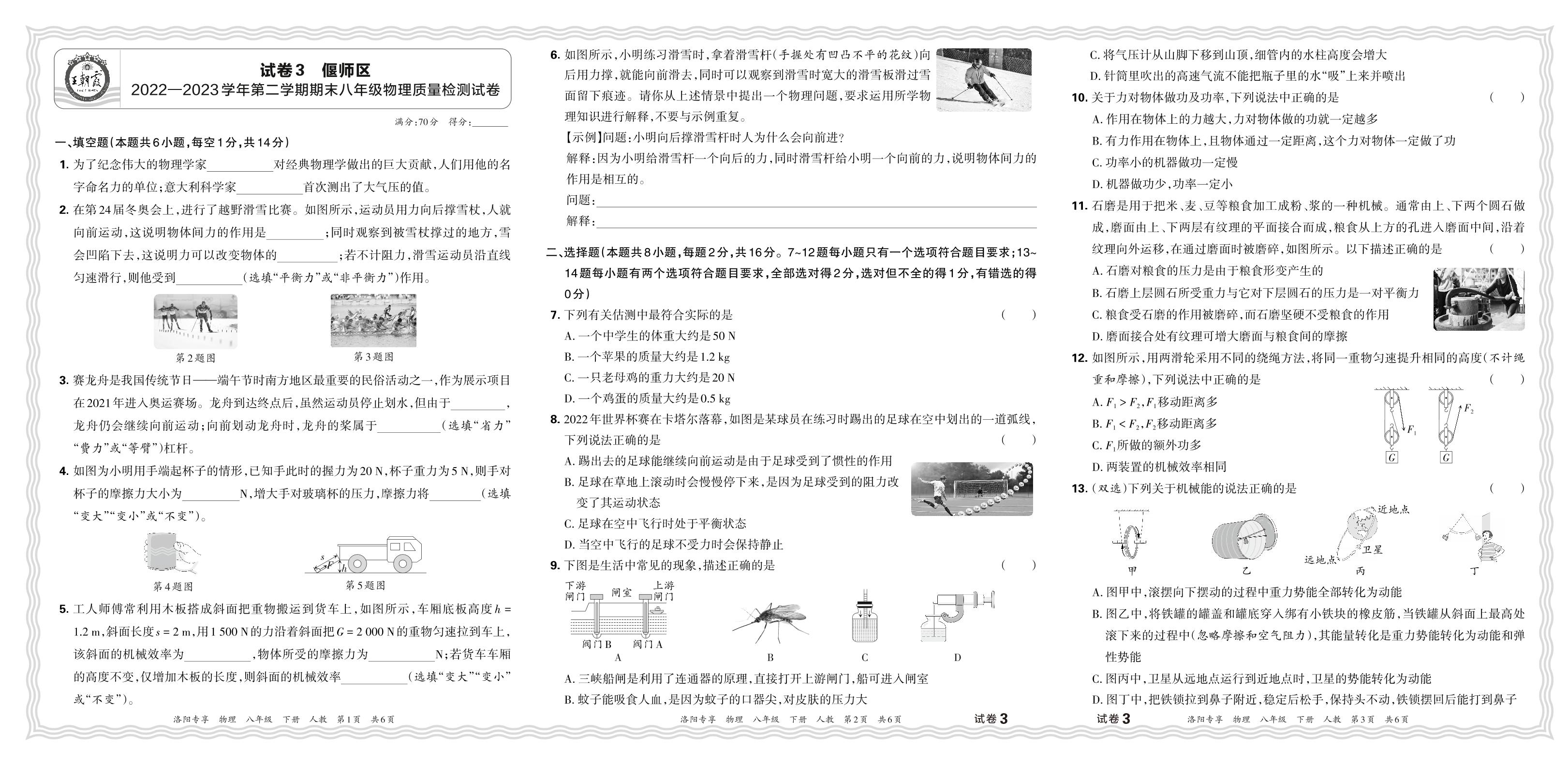 河南省洛阳市偃师区2022-2023学年第二学期期末八年级物理质量检测试卷(人教版)【3】