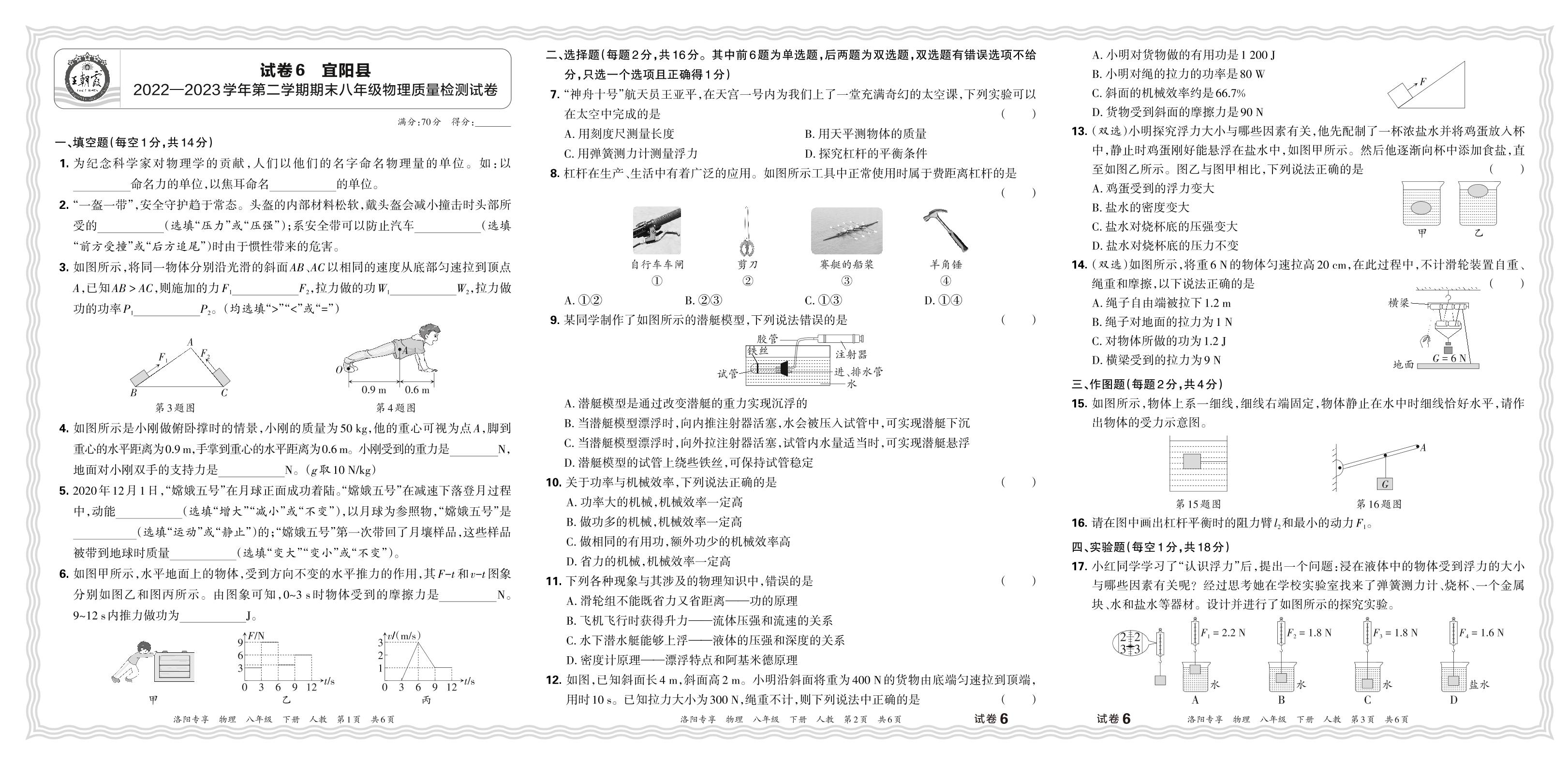 河南省洛阳市宜阳县2022-2023学年第二学期期末八年级物理质量检测试卷(人教版)【6】