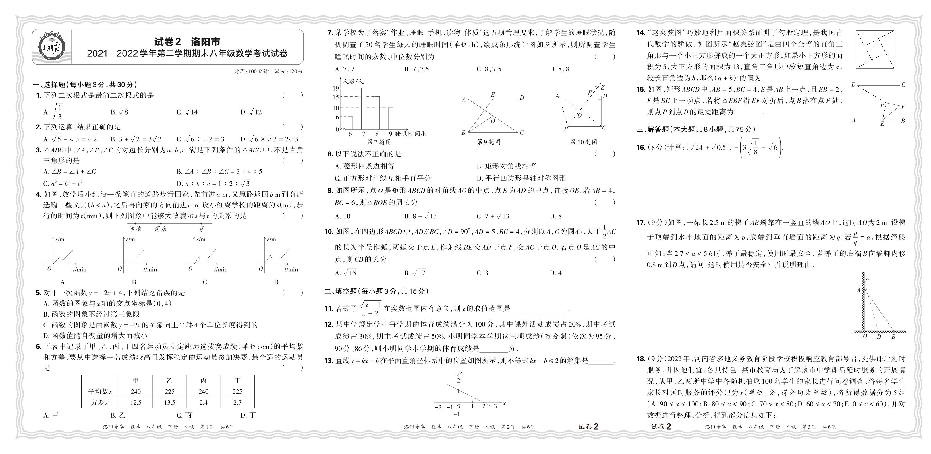 河南省洛阳市2021-2022学年第二学期期末八年级数学考试试卷(人教版)【2】