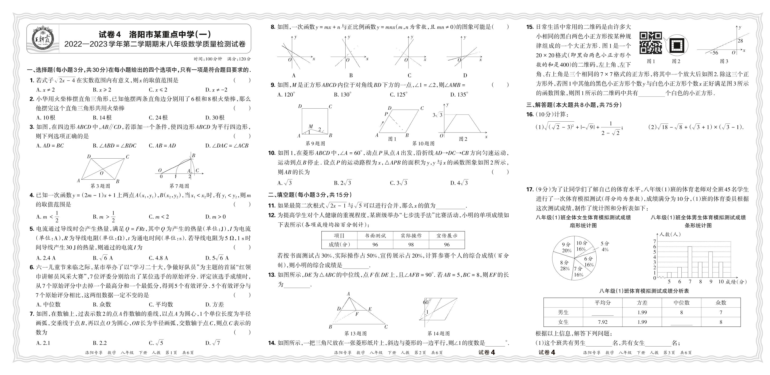河南省洛阳市某重点中学(一)2022-2023学年第二学期期末八年级数学质量检测试卷(人教版)【4】