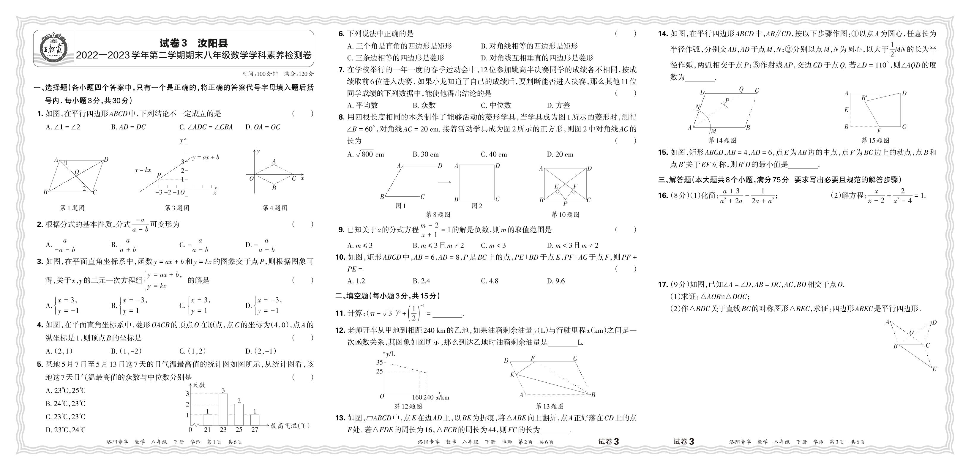 河南省洛阳市汝阳县2022-2023学年第二学期期末八年级数学学科素养检测卷(华师版)【3】