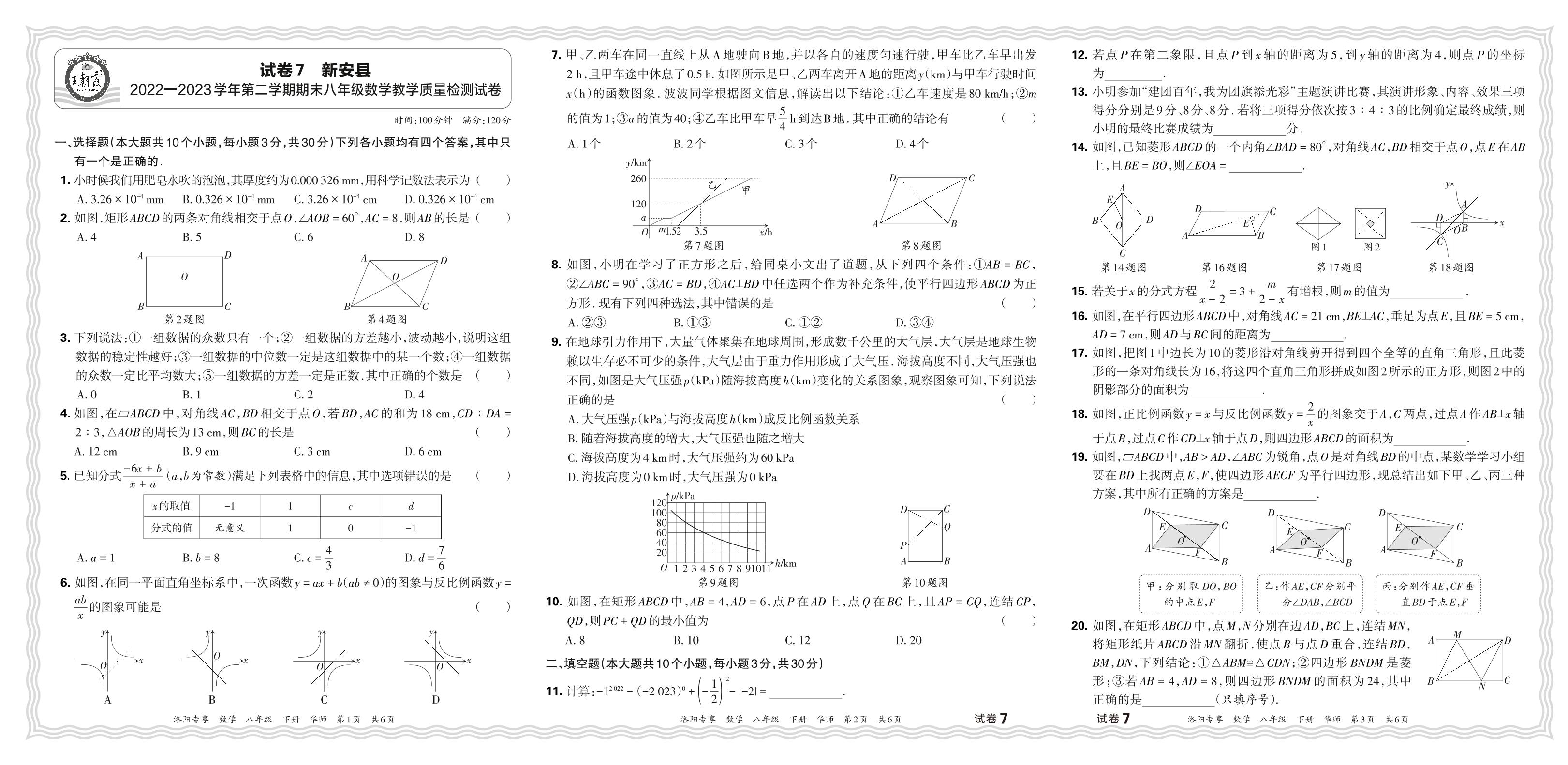 河南省洛阳市新安县2022-2023学年第二学期期末八年级数学教学质量检测试卷(华师版)【7】