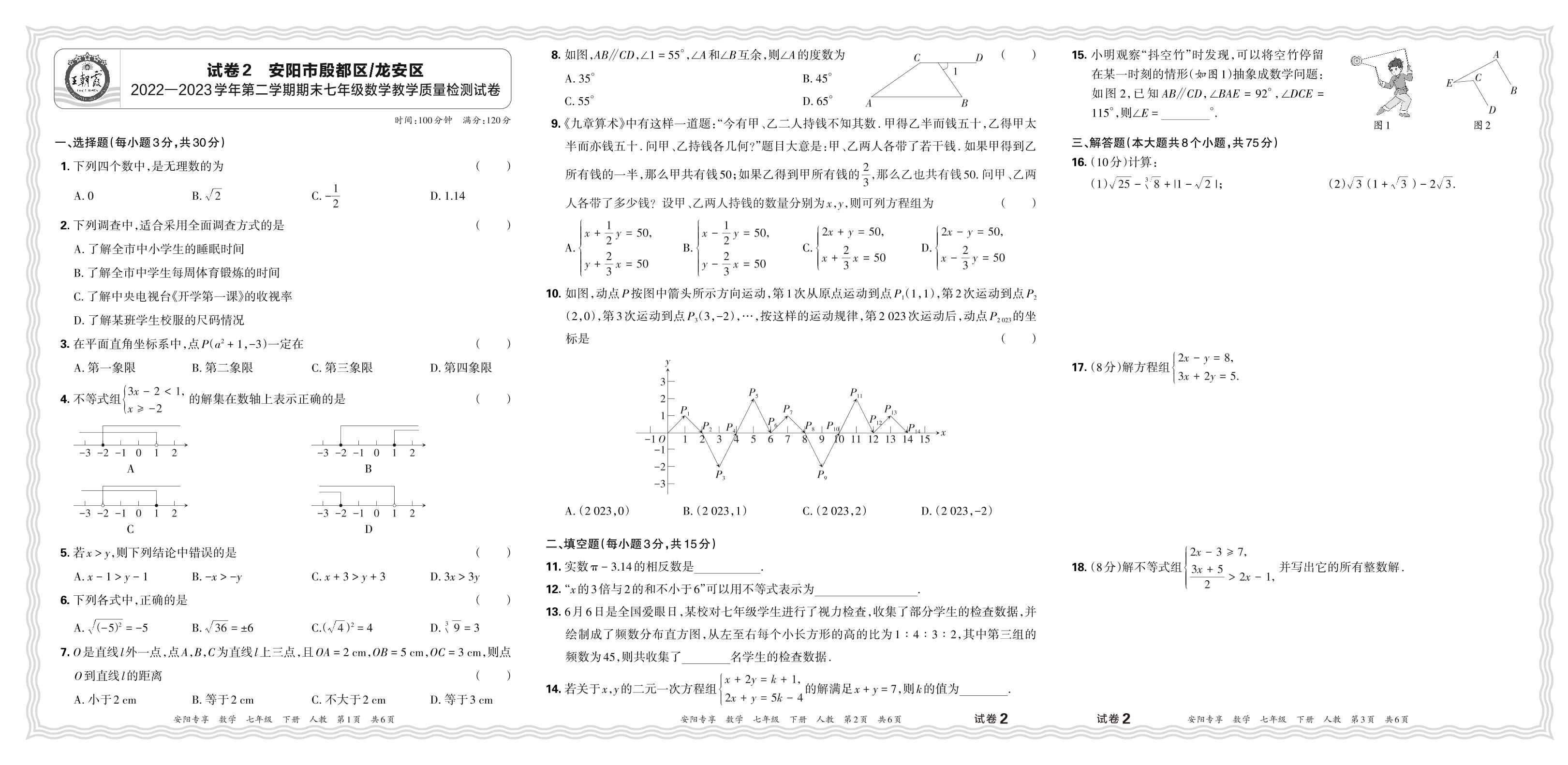 河南省安阳市殷都区、龙安区2022-2023学年第二学期期末七年级数学质量检测试卷(人教版)【2】