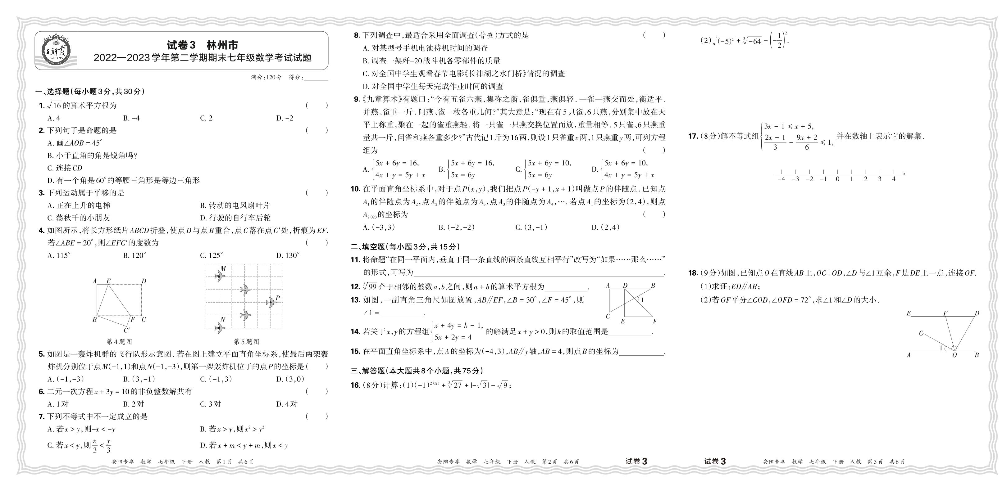 河南省安阳市林州市2022-2023学年第二学期期末七年级数学考试试题(人教版)【3】