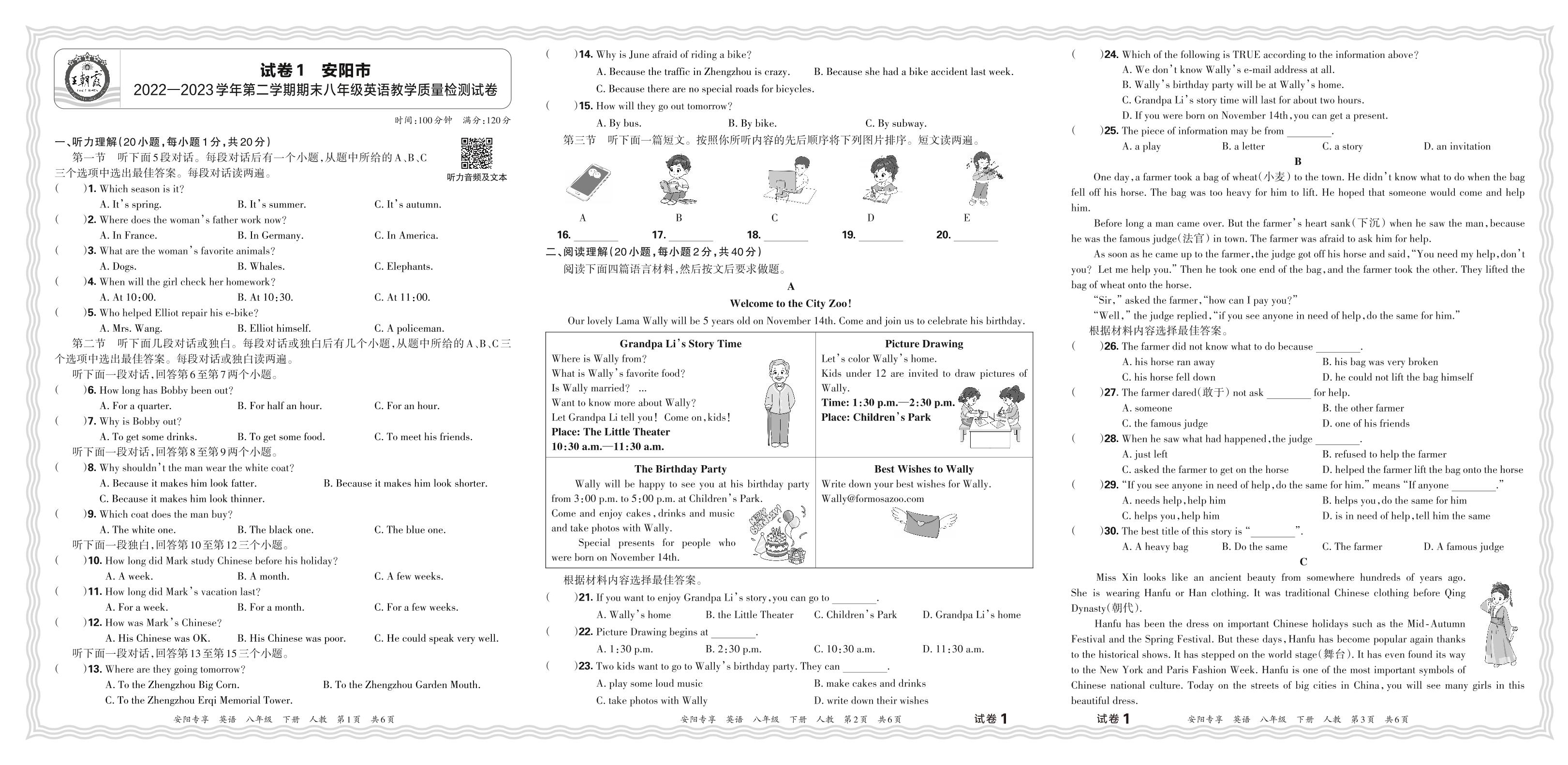 河南省安阳市2022-2023学年第二学期期末八年级英语教学质量检测试卷(人教版)【1】
