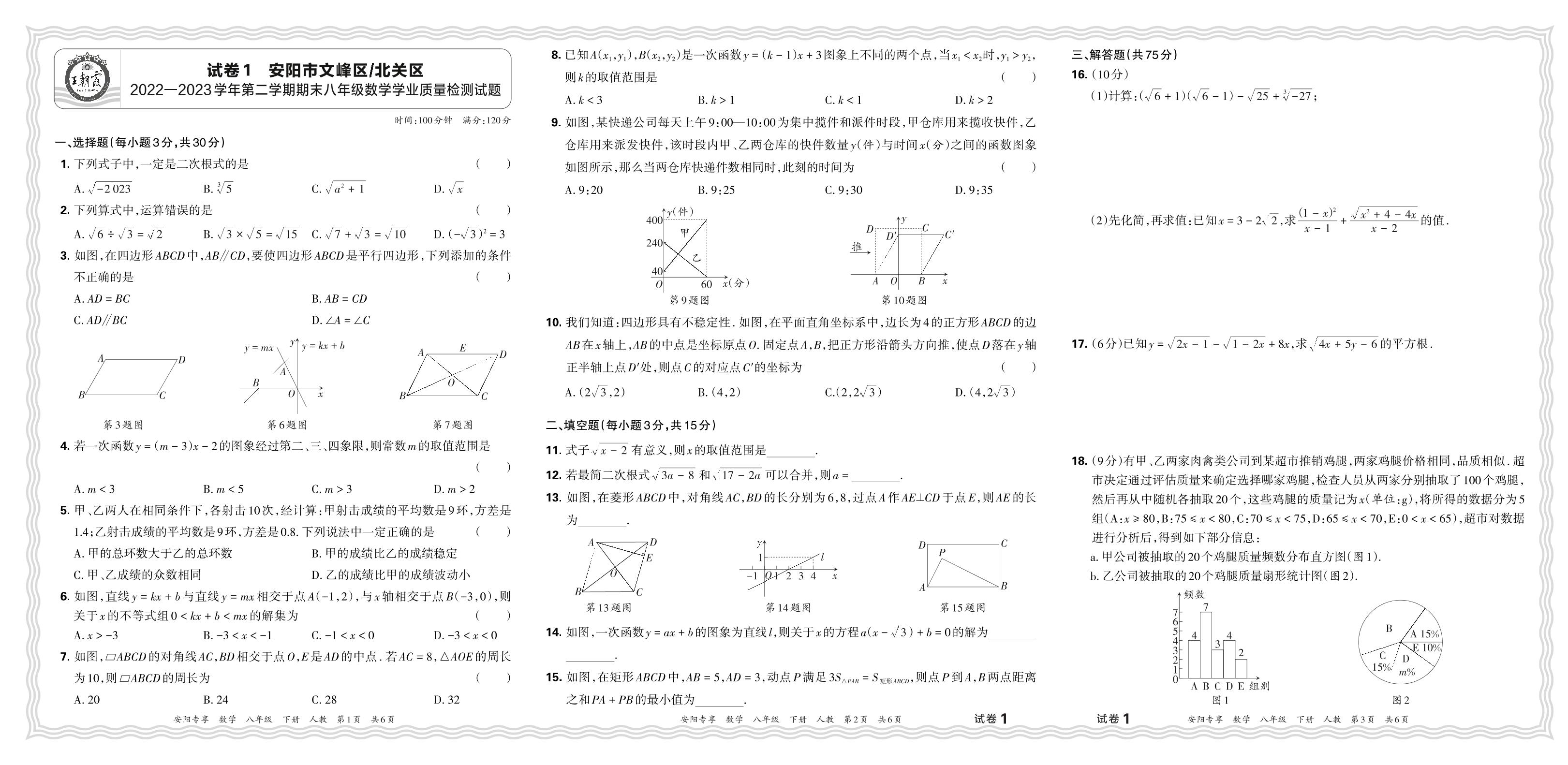河南省安阳市文峰区、北关区2022-2023学年第二学期期末八年级数学学业质量检测试题(人教版)【1】