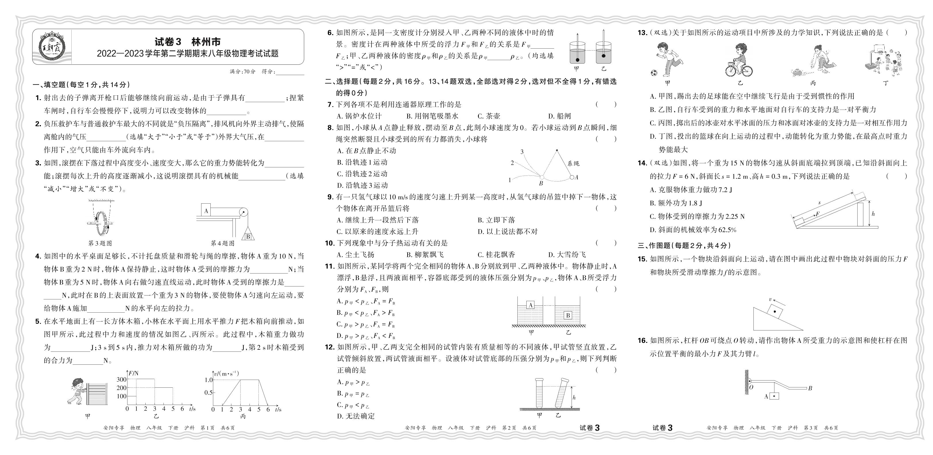 河南省安阳市林州市2022-2023学年第二学期期末八年级物理考试试题(沪科版)【3】