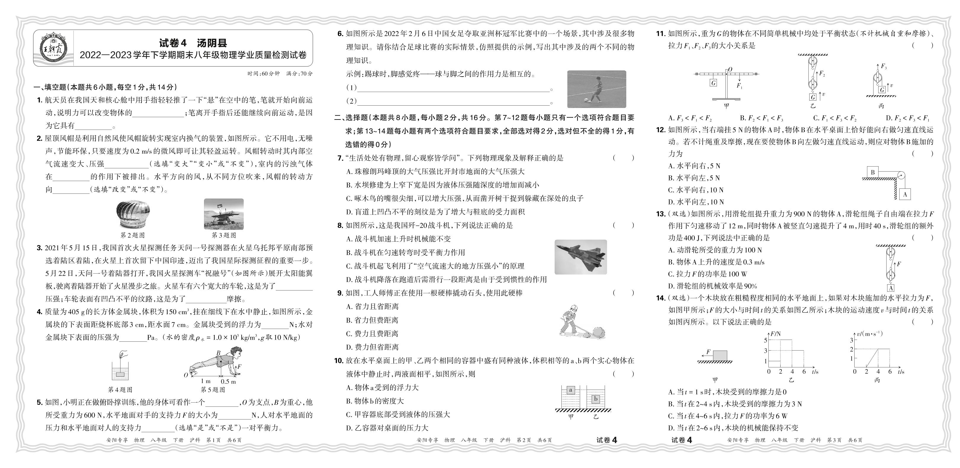 河南省安阳市汤阴县2022-2023学年下学期期末八年级物理学业质量检测试卷(沪科版)【4】
