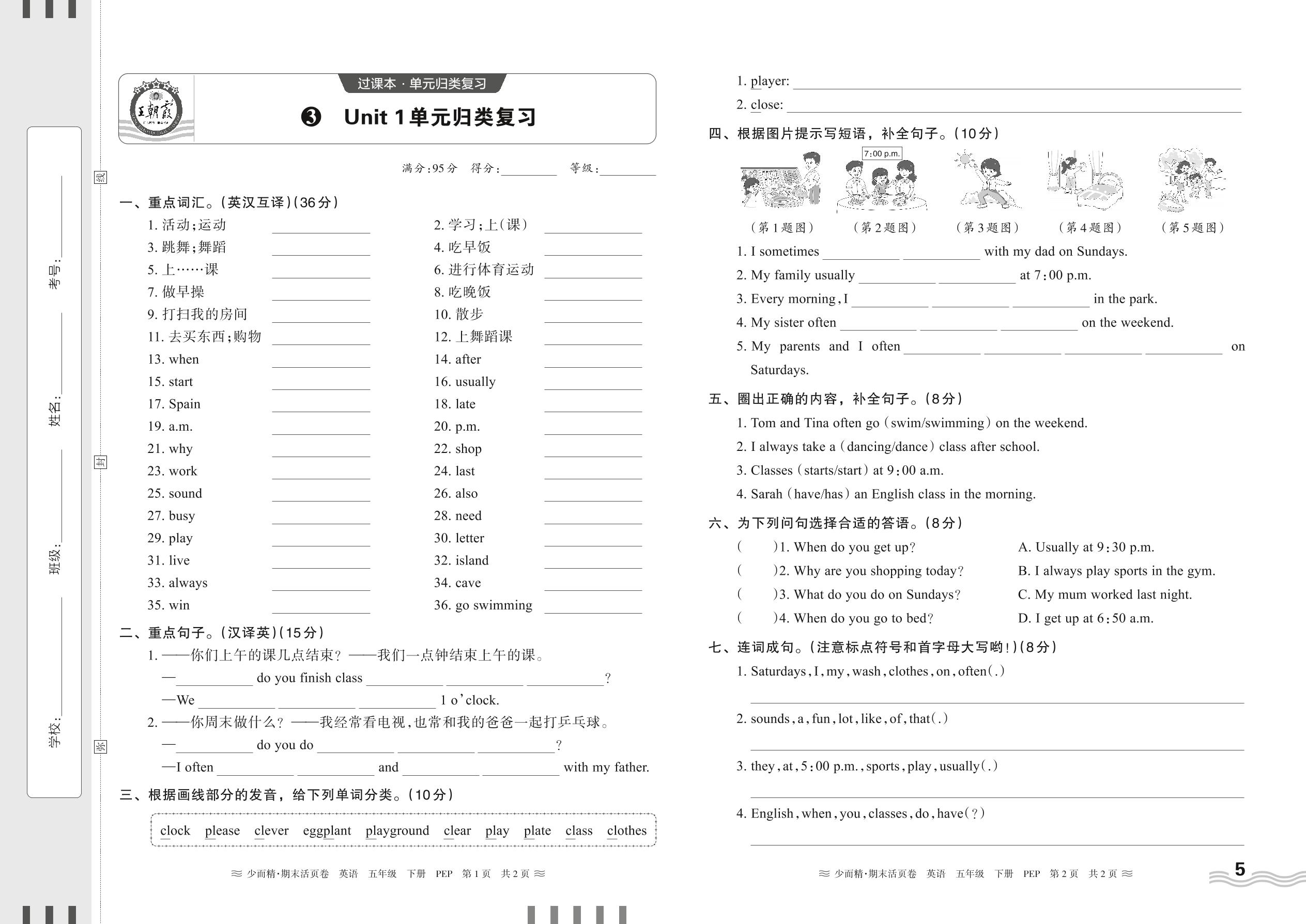 2024下册五年级英语人教PEP版 期末过课本HY版·Unit 1单元归类复习_R240427162525158